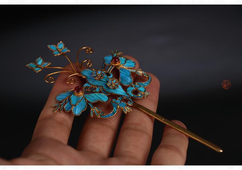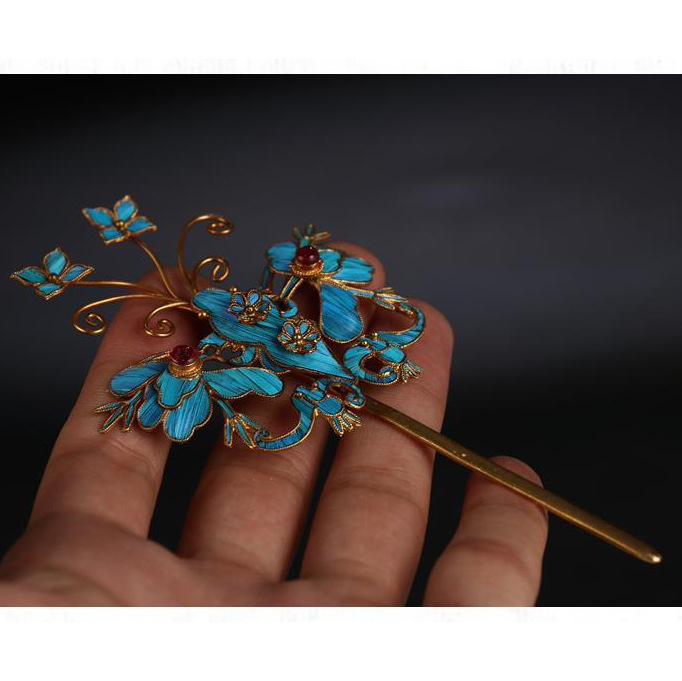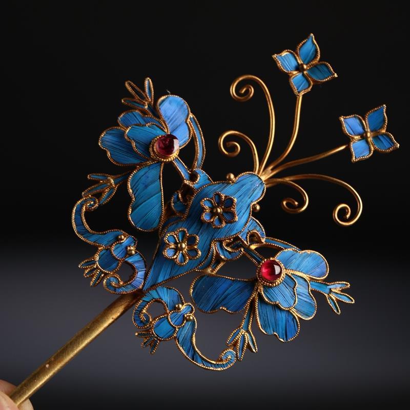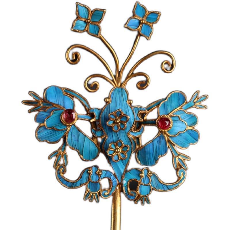 景泰蓝点翠蝴蝶发饰发簪银鎏金发钗复古风头饰中式新娘女簪子 投诉