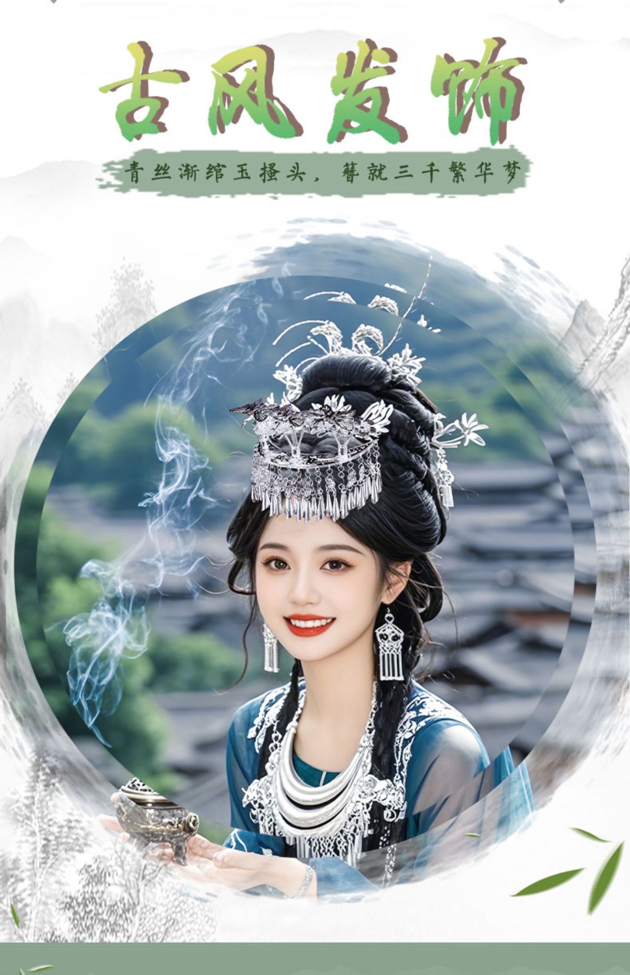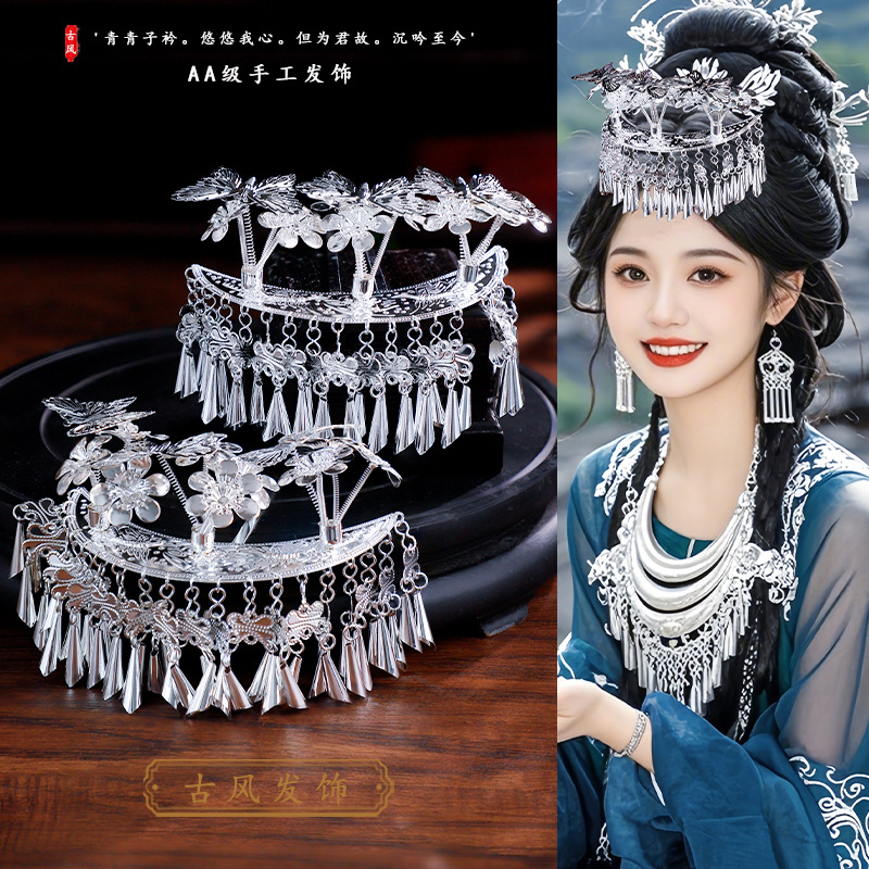 苗疆写真少女异域风发饰品苗族流苏步摇发钗民族服饰百搭苗银饰品