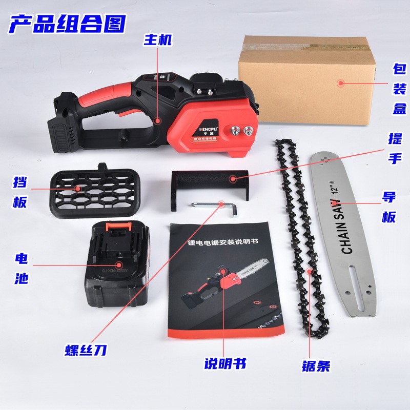 家用小型无刷大功率锂电池电链锯手电动电锯充电式伐木工锯树神器