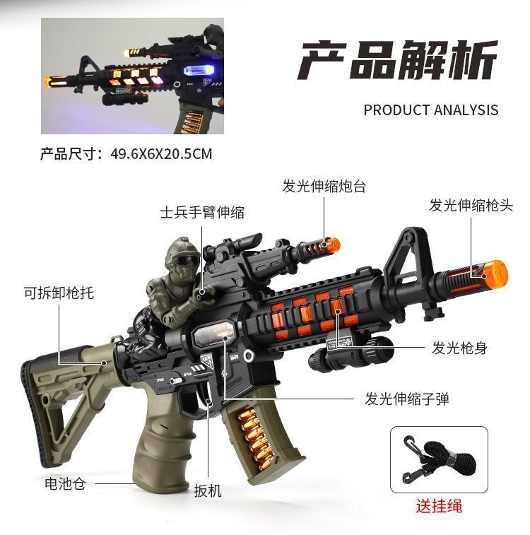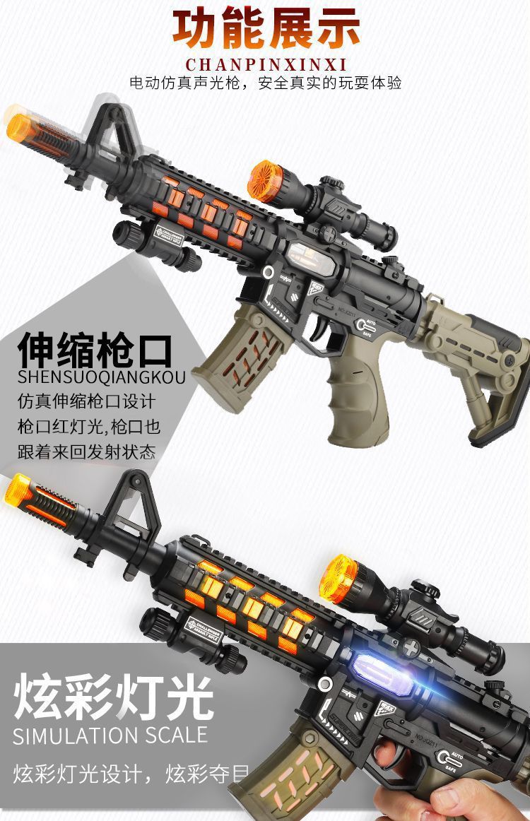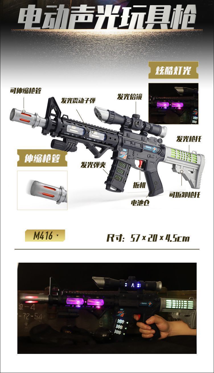 儿童电动枪冲锋枪M416玩具枪声光音乐地摊热卖发光玩具 投诉