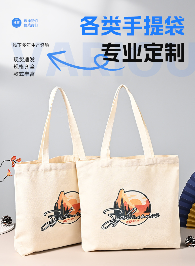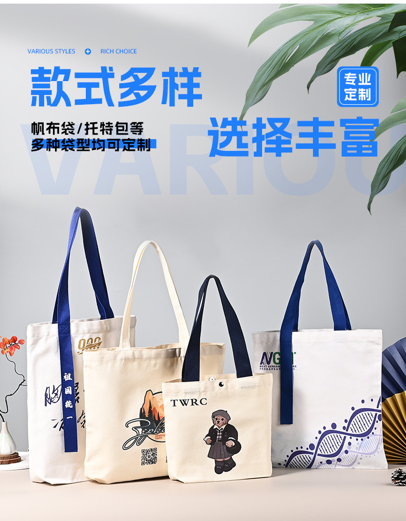 帆布手提袋订制厂家直销印刷logo织带手提包简约大容量印制购物袋 English | 投诉
