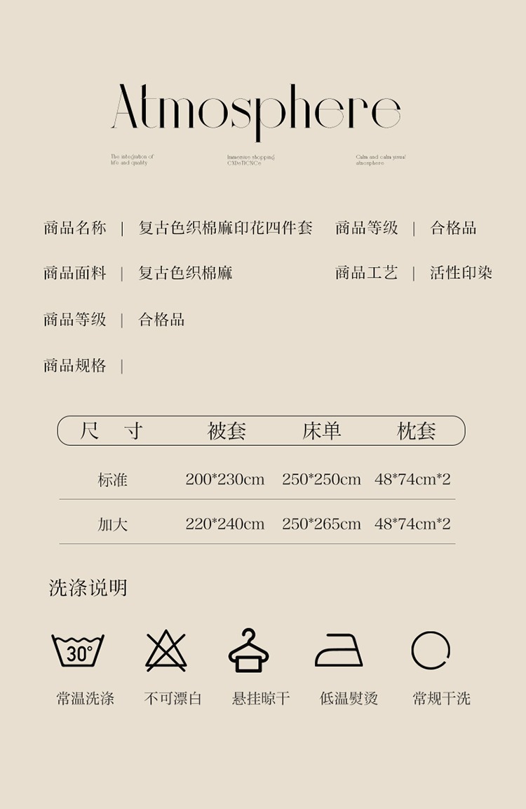 | 1.8m床单款(被套200*230床单245*250枕套48*74*2) | ¥13800 | 999999套可售 |