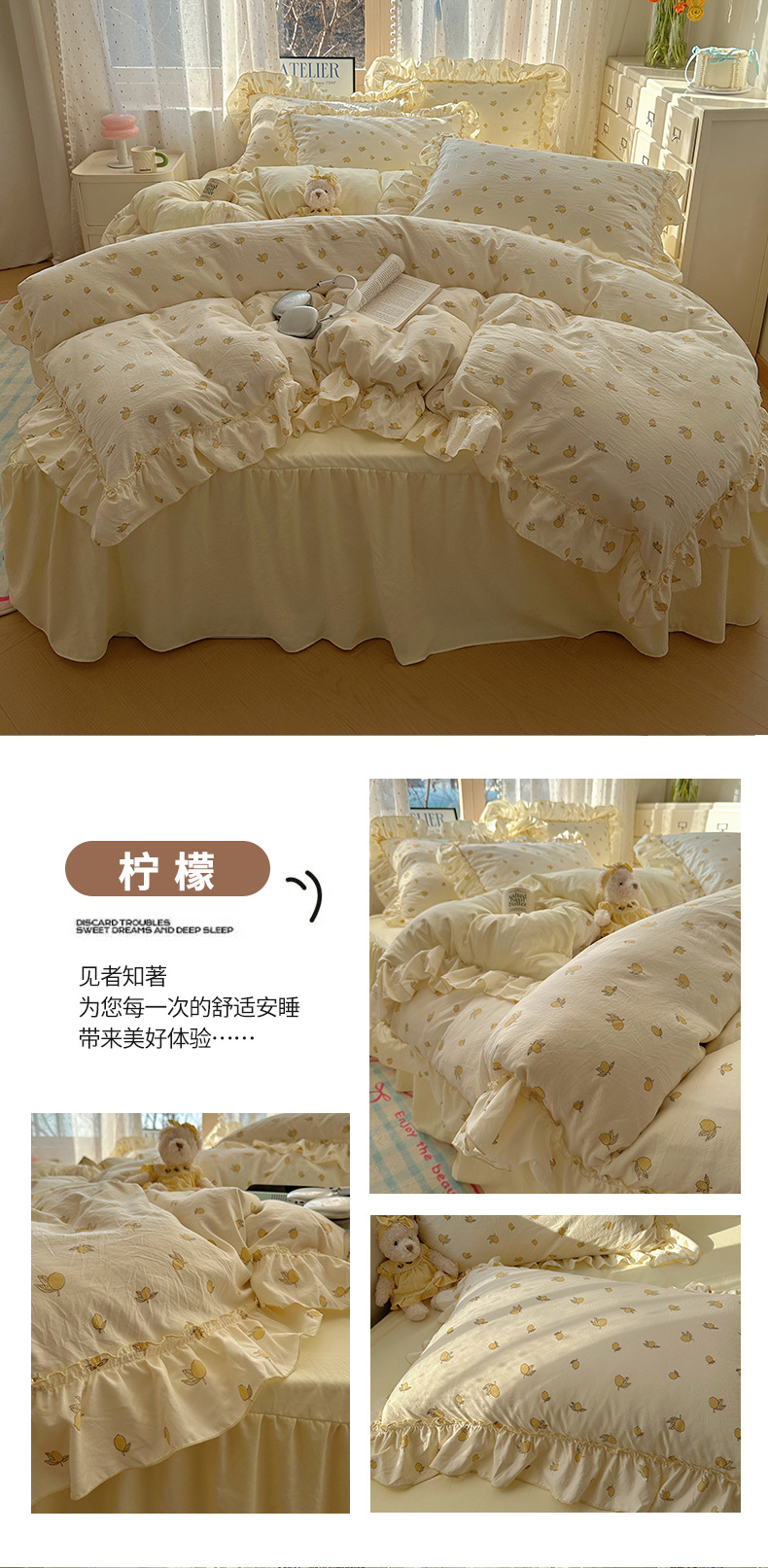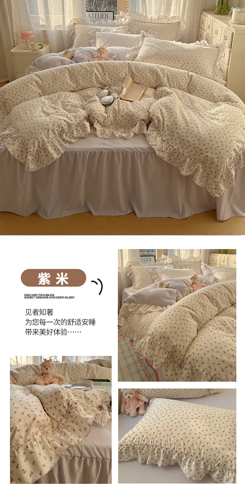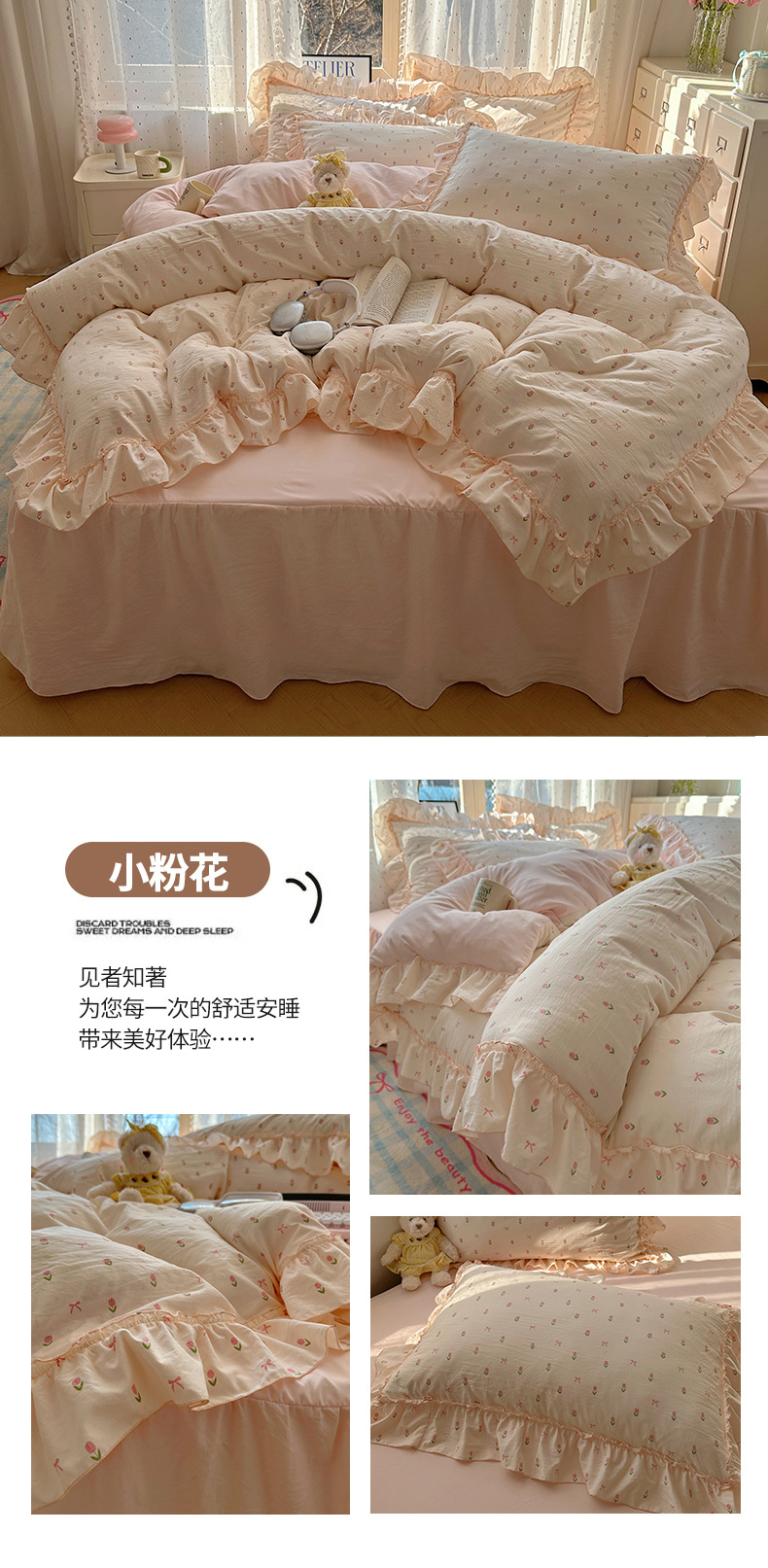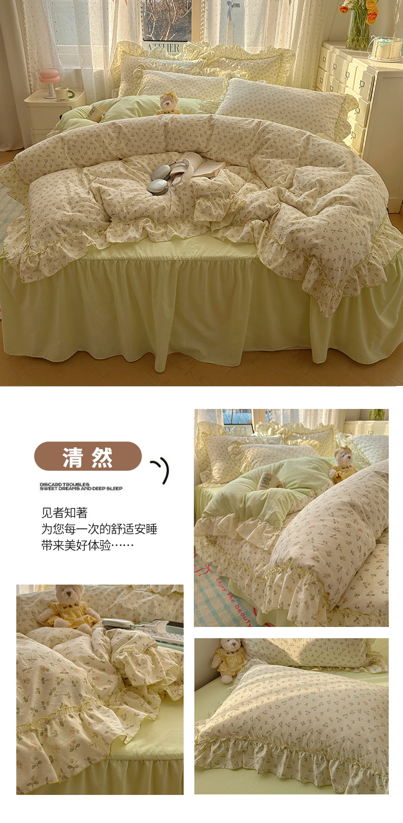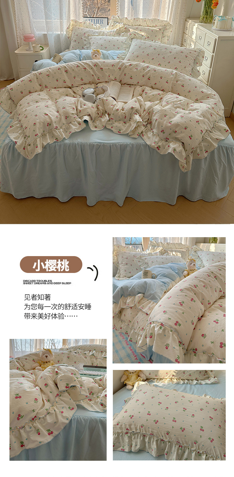 【1.5床裙款】被套200X230cm 床裙150X200cm 枕套48X74cmX2