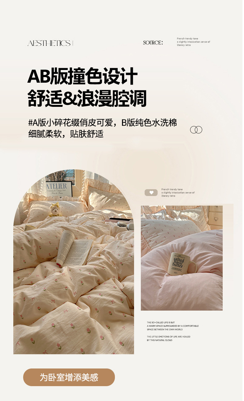 【1.2床单款】被套150X200cm 床单180X230cm 枕套48X74cmX1