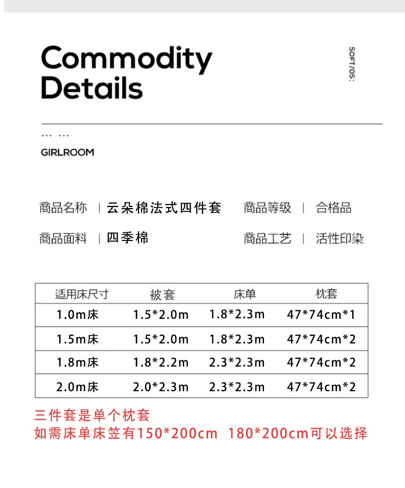 | 1.5-1.8床笠四件套被套200*230 | ¥10000 | 300套可售 |