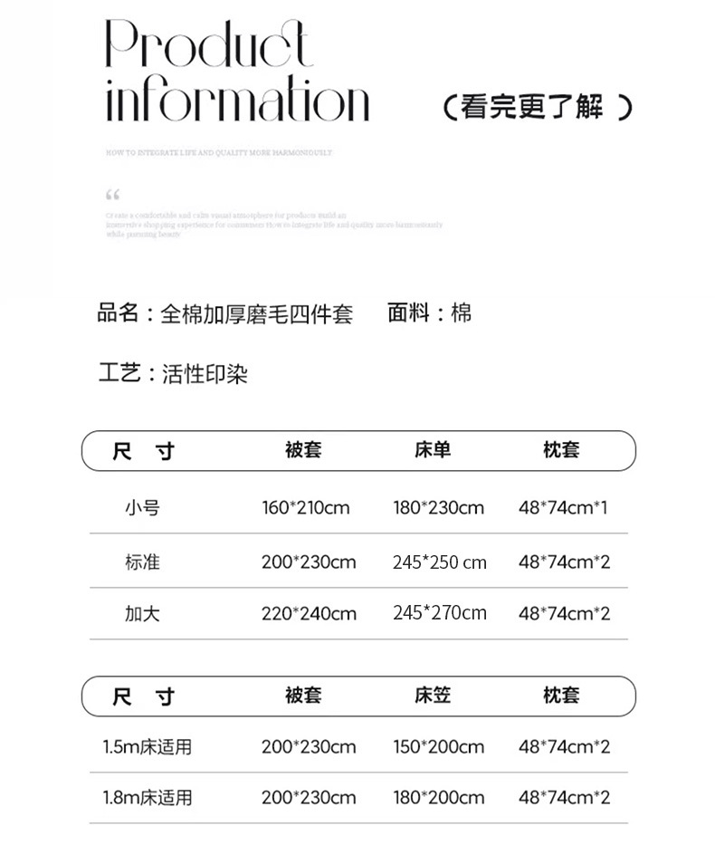 | 1.8床笠款四件套被套200*230 | ¥15660 | 66330套可售 |