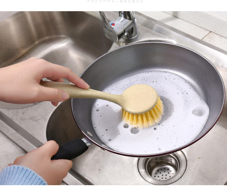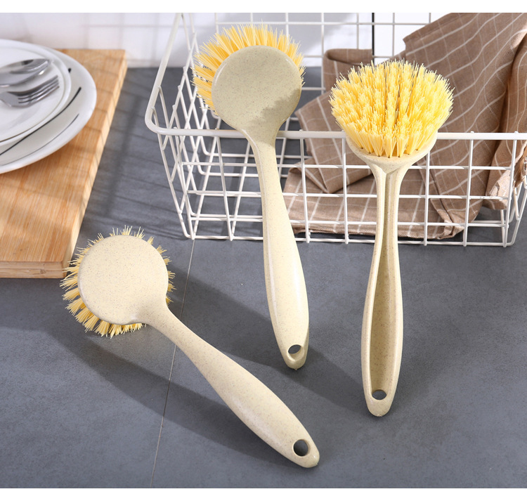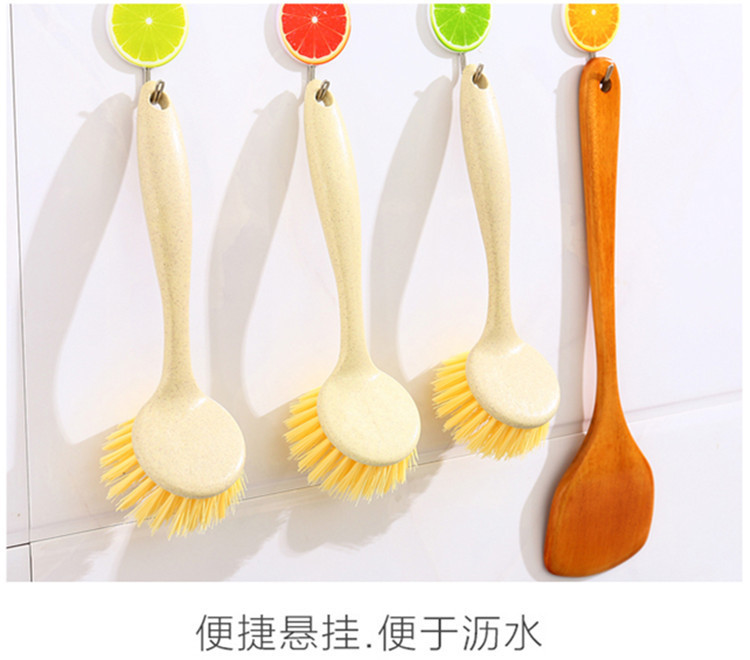 厨房清洁工具小麦秸秆长柄挂式锅刷水台灶台瓷砖清洗刷子设计刮水 投诉