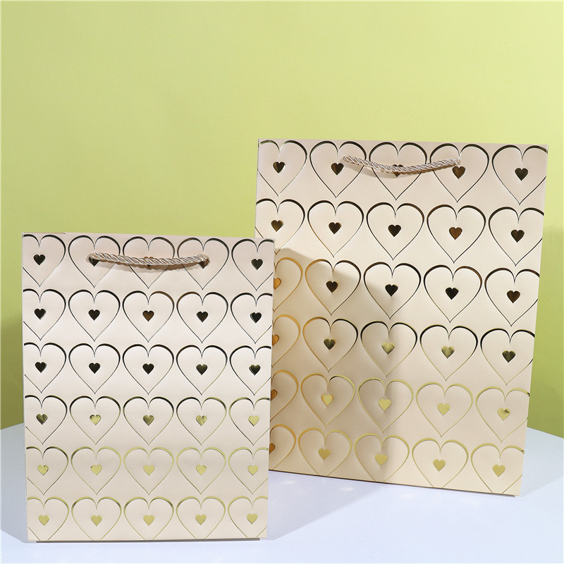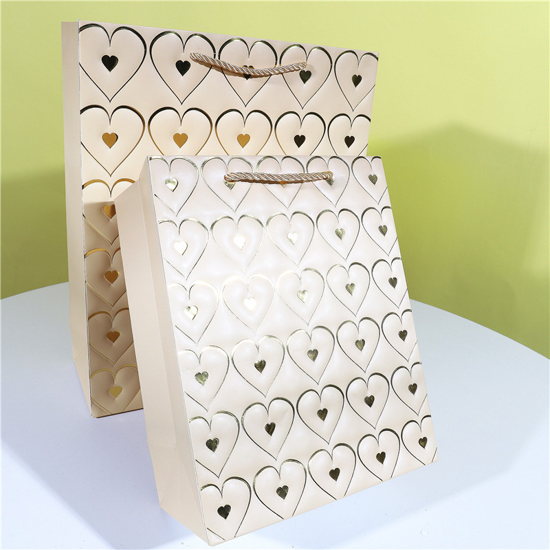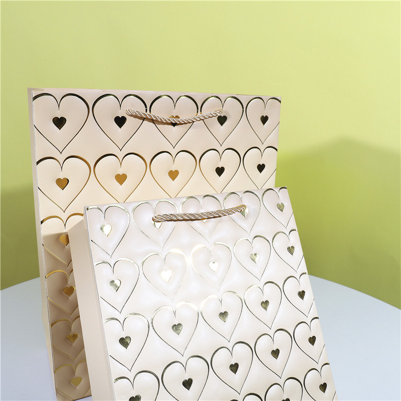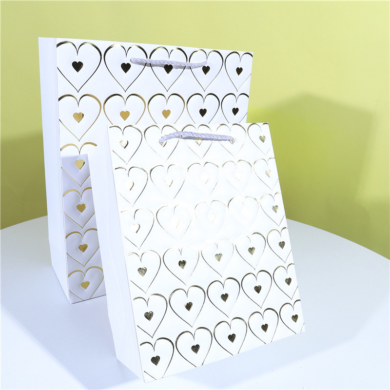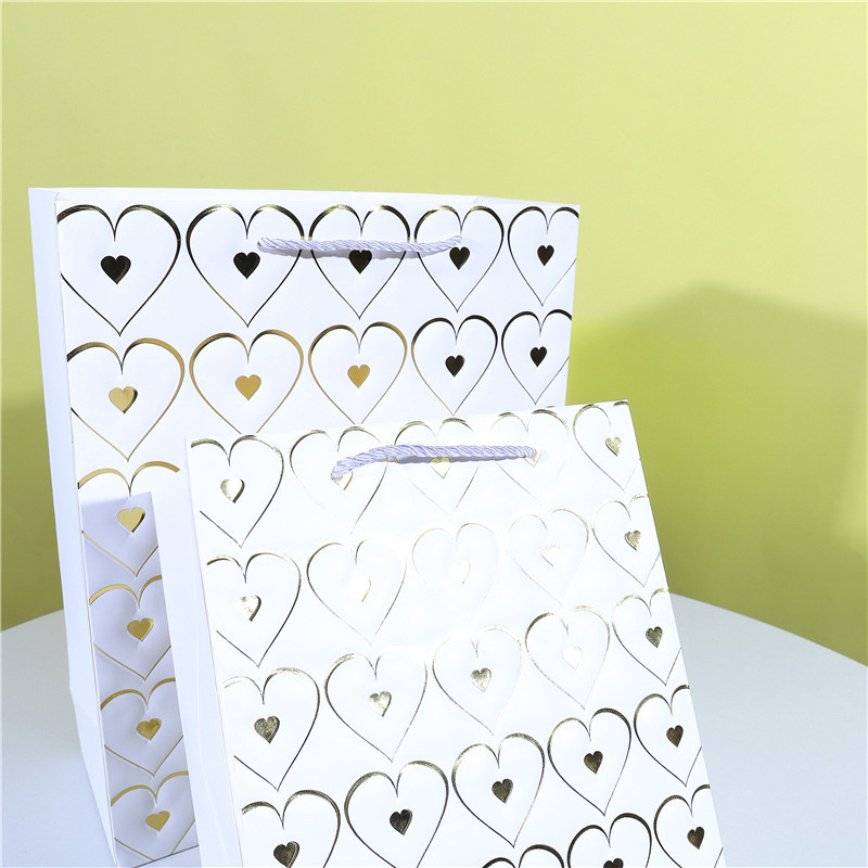 爱心情人节白卡手提袋包装袋现货七夕母亲节纸袋子烫金高档礼物袋 English | 投诉