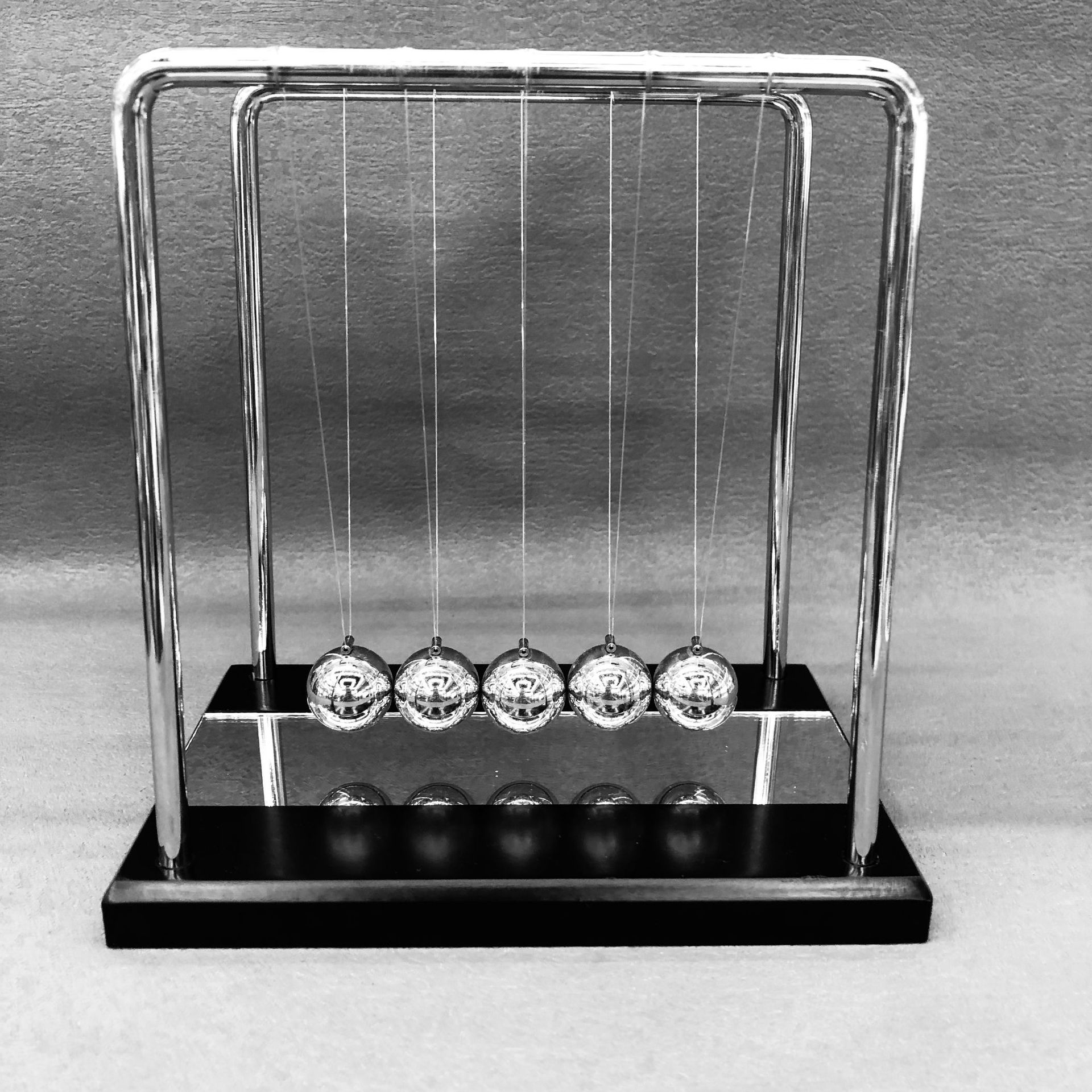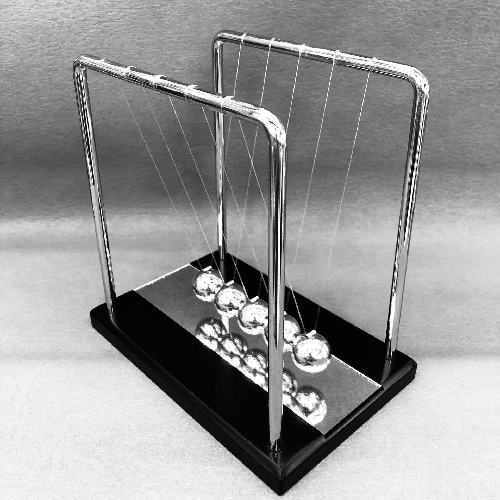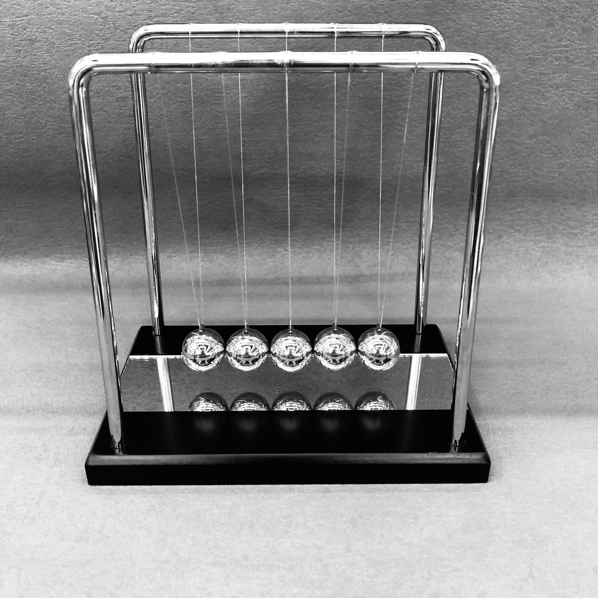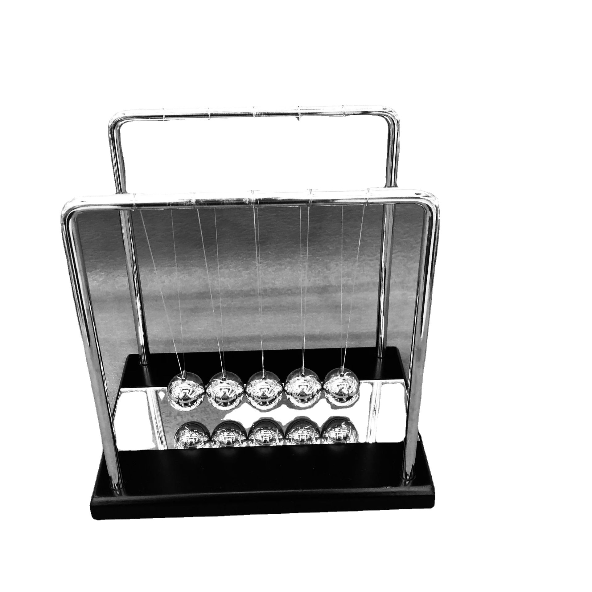 家居客厅创意礼品物理平衡摆球牛顿摆木底金属支架带镜片大号