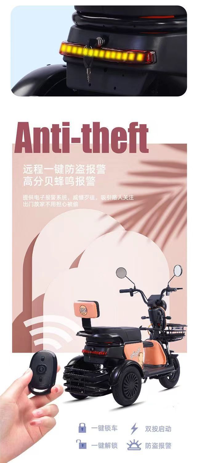 厂家批发老年电动三轮车出口成人休闲代步电动小型家用电瓶车
