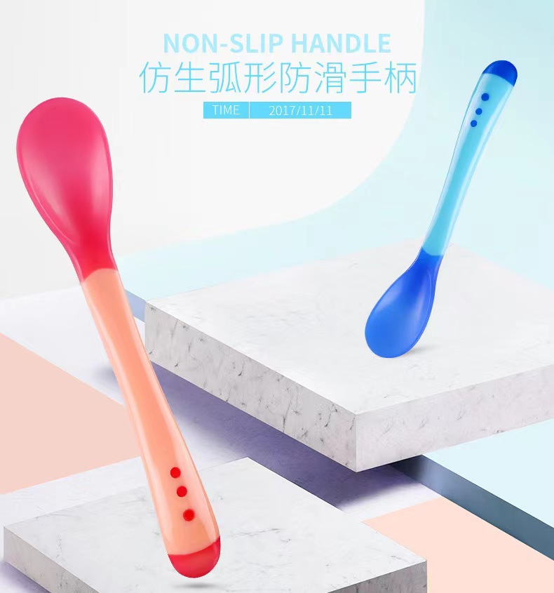 厂家直销婴幼儿感温勺宝宝软头汤勺喂养勺子感温变色勺子 投诉