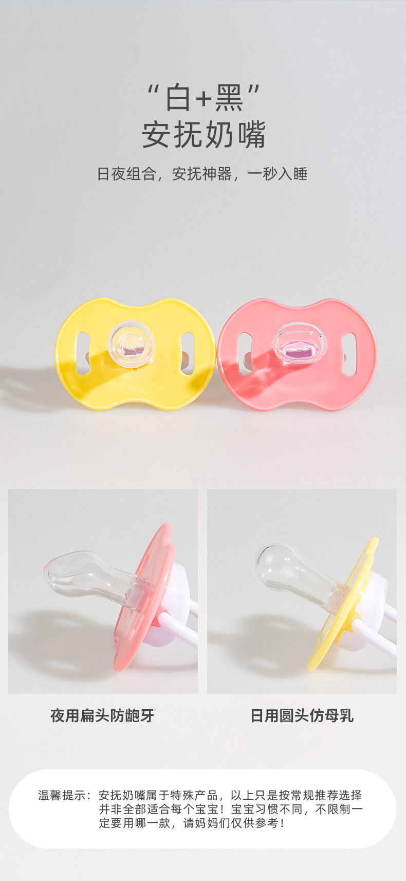 | 夜用扁头-粉色卡通安抚奶嘴+收纳盒+防掉链+包装 | ¥0 | 9950件可售 |