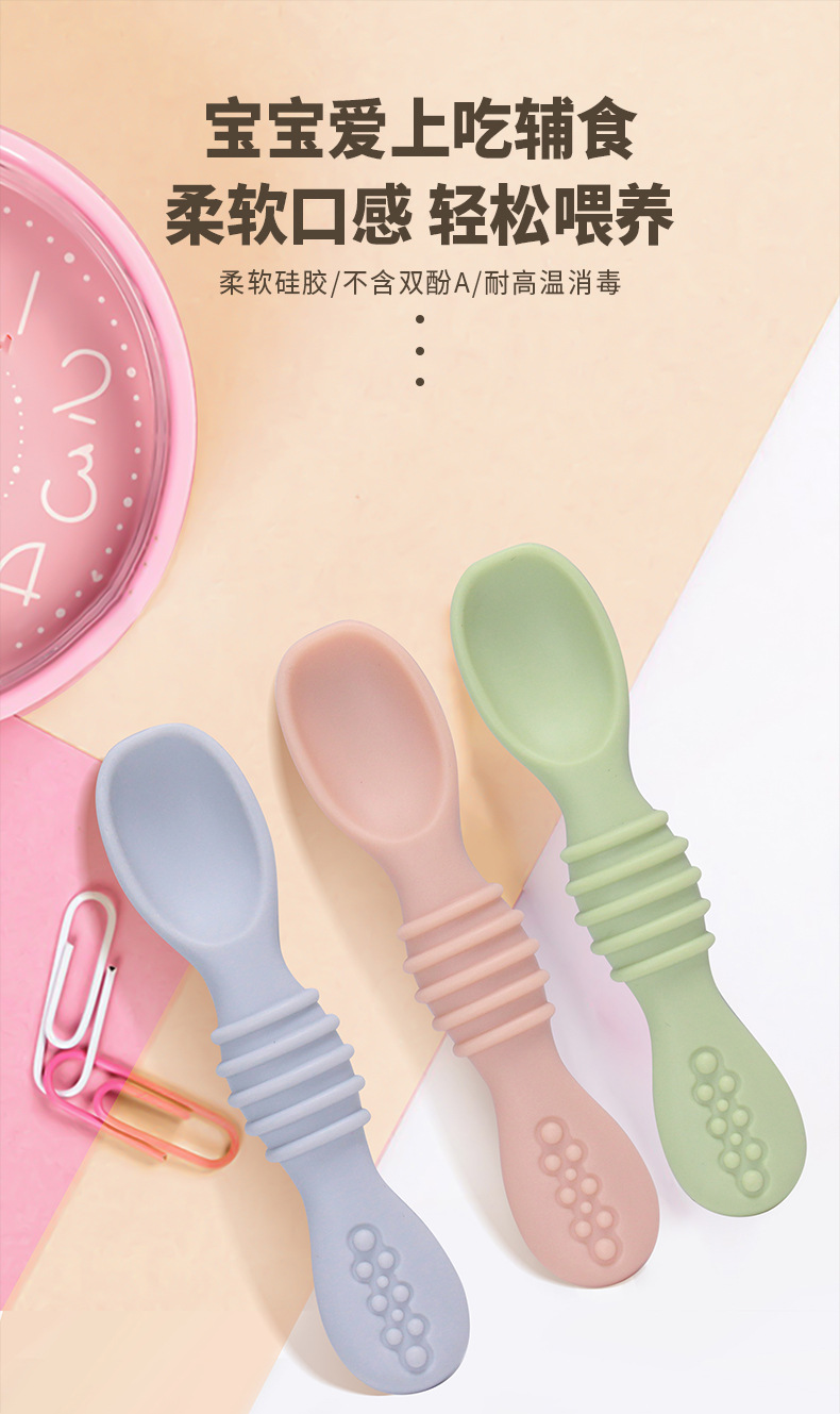 宝宝食品级硅胶粘贴软勺儿童学吃饭训练餐具婴儿喂养辅食勺子批发 投诉
