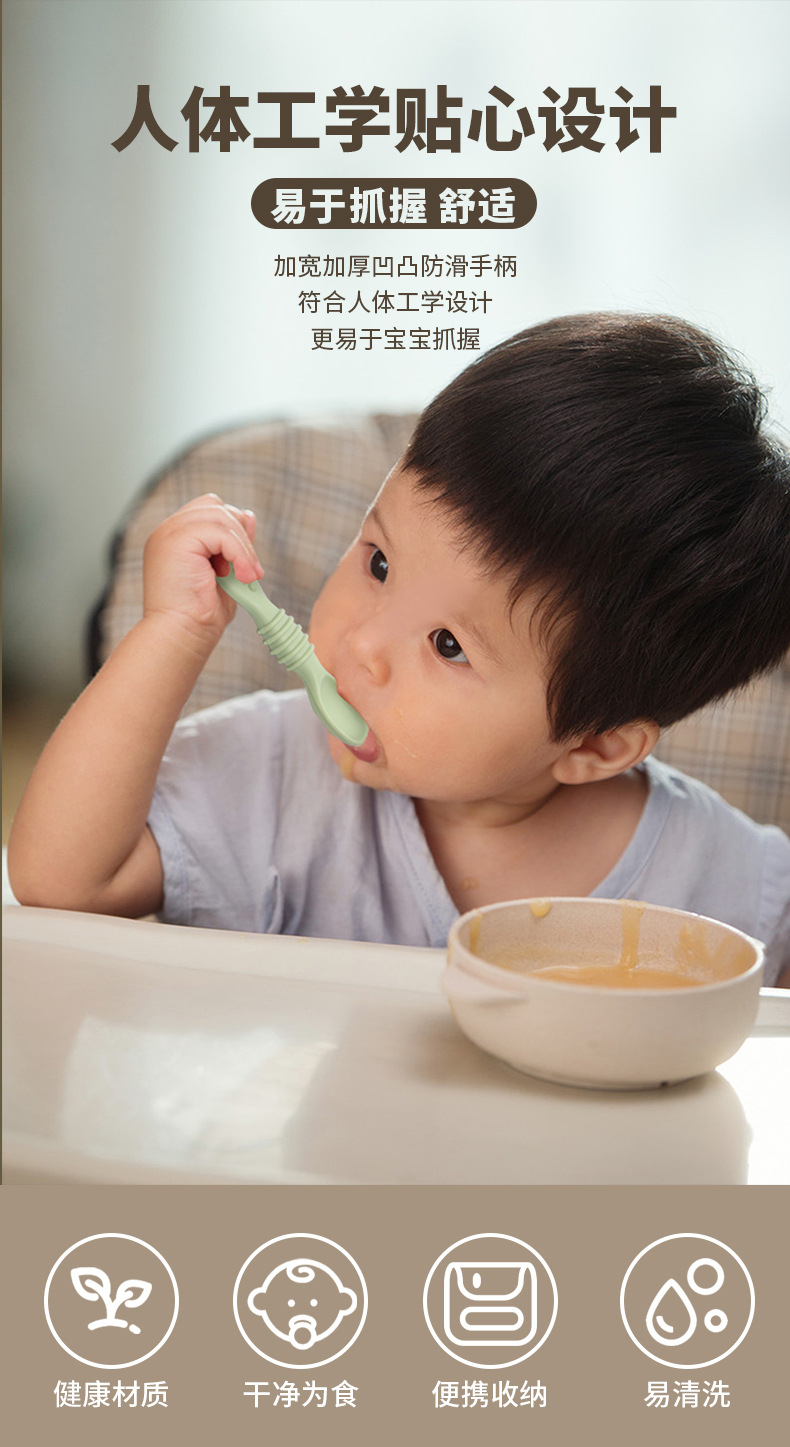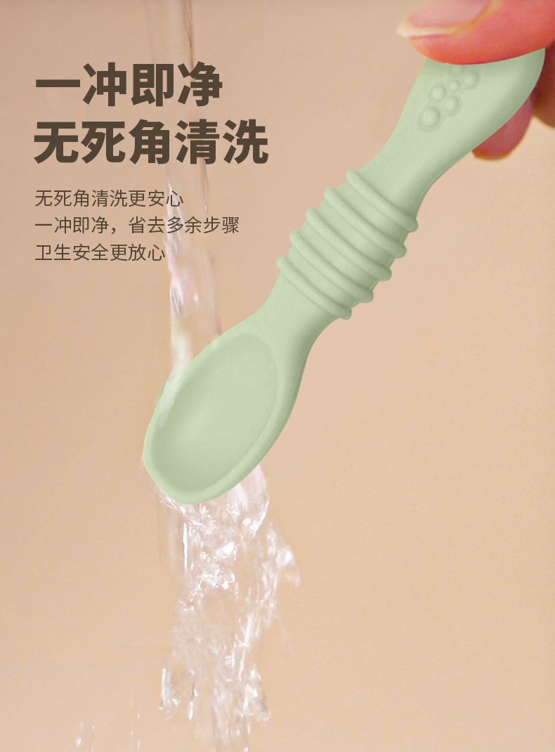 宝宝食品级硅胶粘贴软勺儿童学吃饭训练餐具婴儿喂养辅食勺子批发