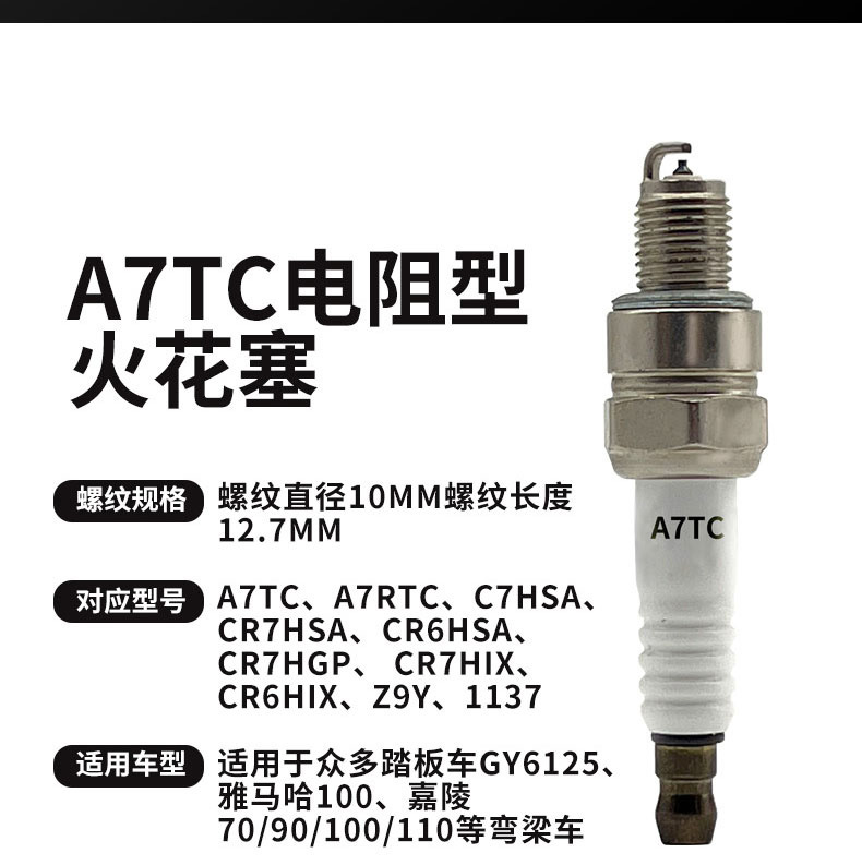 A7TC摩托车火花塞三轮车踏板耐用铱金电阻火花塞高性能电喷