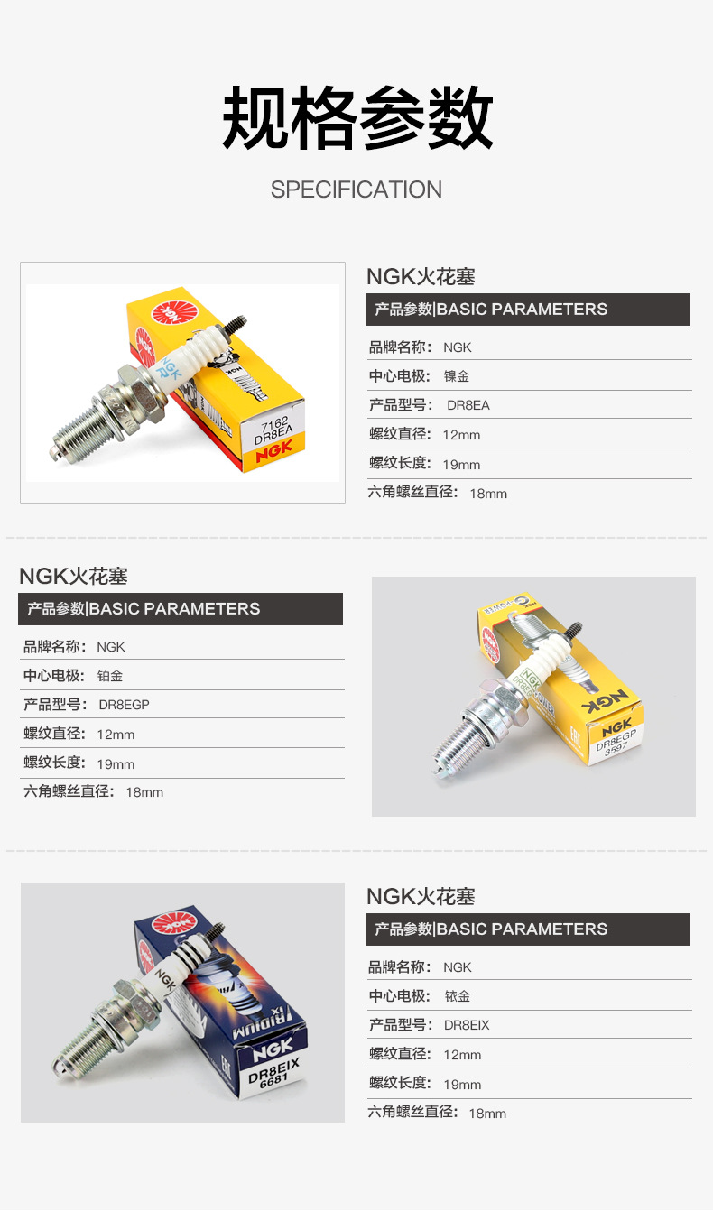 正品NGK原厂火花塞DR8EA豪爵摩托车TR150宝逸DK125 150改装铱金 投诉
