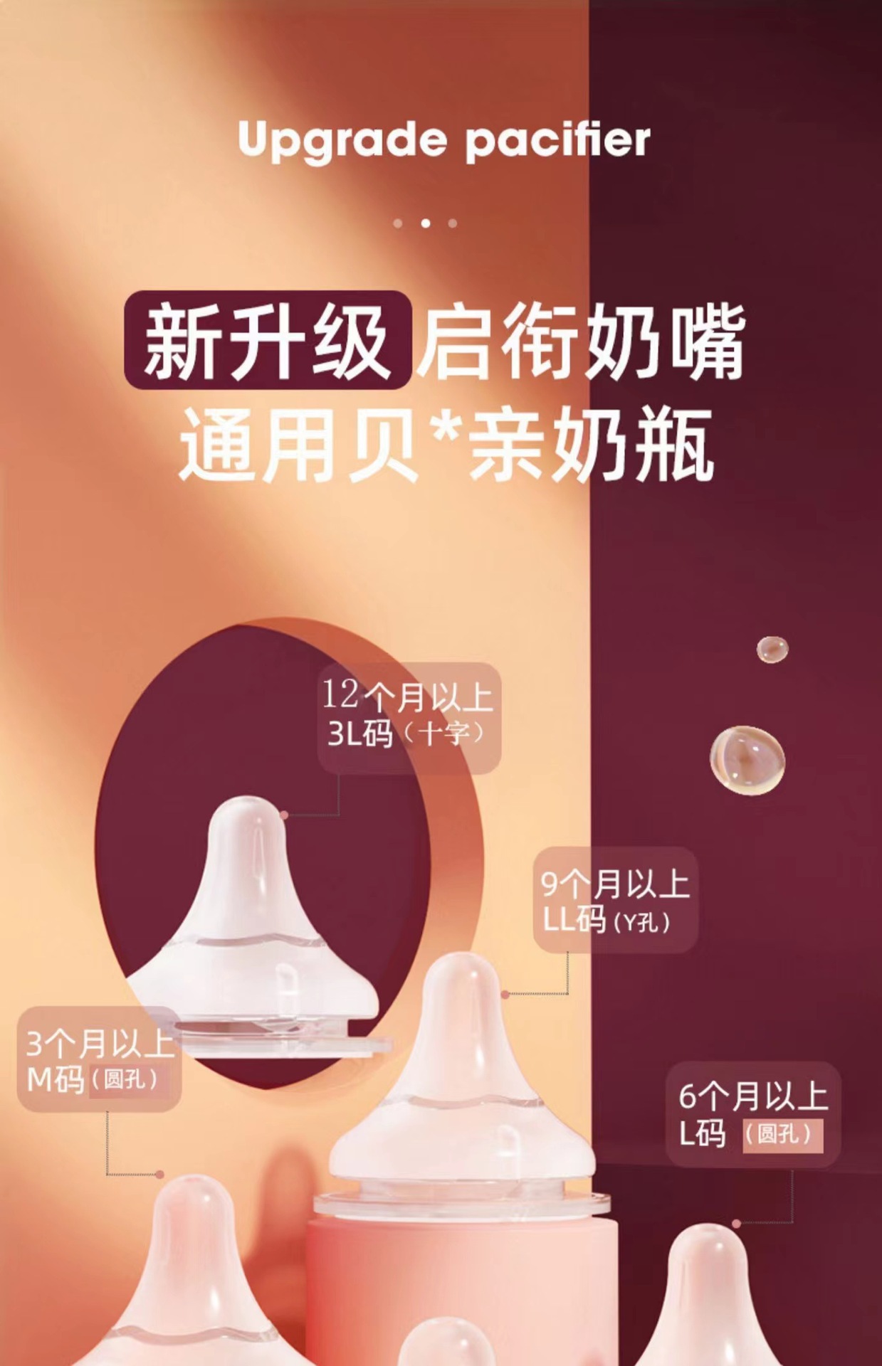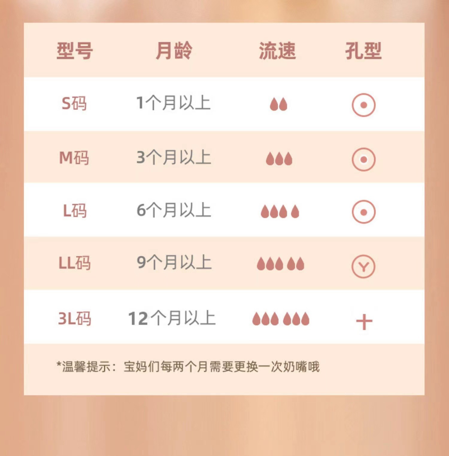 材质: 食品级硅胶 品牌: 其它 口径规格: 宽口径 适用年龄: 0-3岁 产品类别: 喂奶奶嘴 货号: 002 是否进口: 否 口径形状: 大圆孔 加印LOGO: 不可以 加工定制: 否 颜色: 白色 奶嘴流速: 快 包装种类: 单个装 尺寸大小: S,M,L,十,Y 是否跨境出口专供货源: 否 重量: 0.421 kg/个
