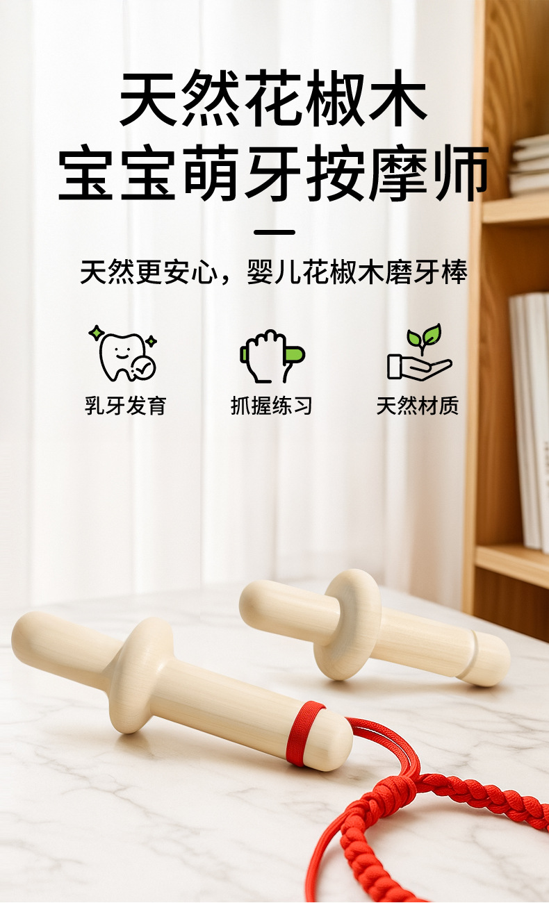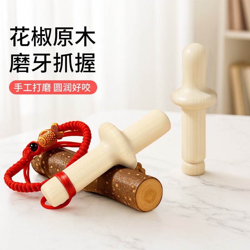传统婴儿牙胶花椒木磨牙棒婴儿手握牙胶宝宝咬胶幼儿口欲期玩具