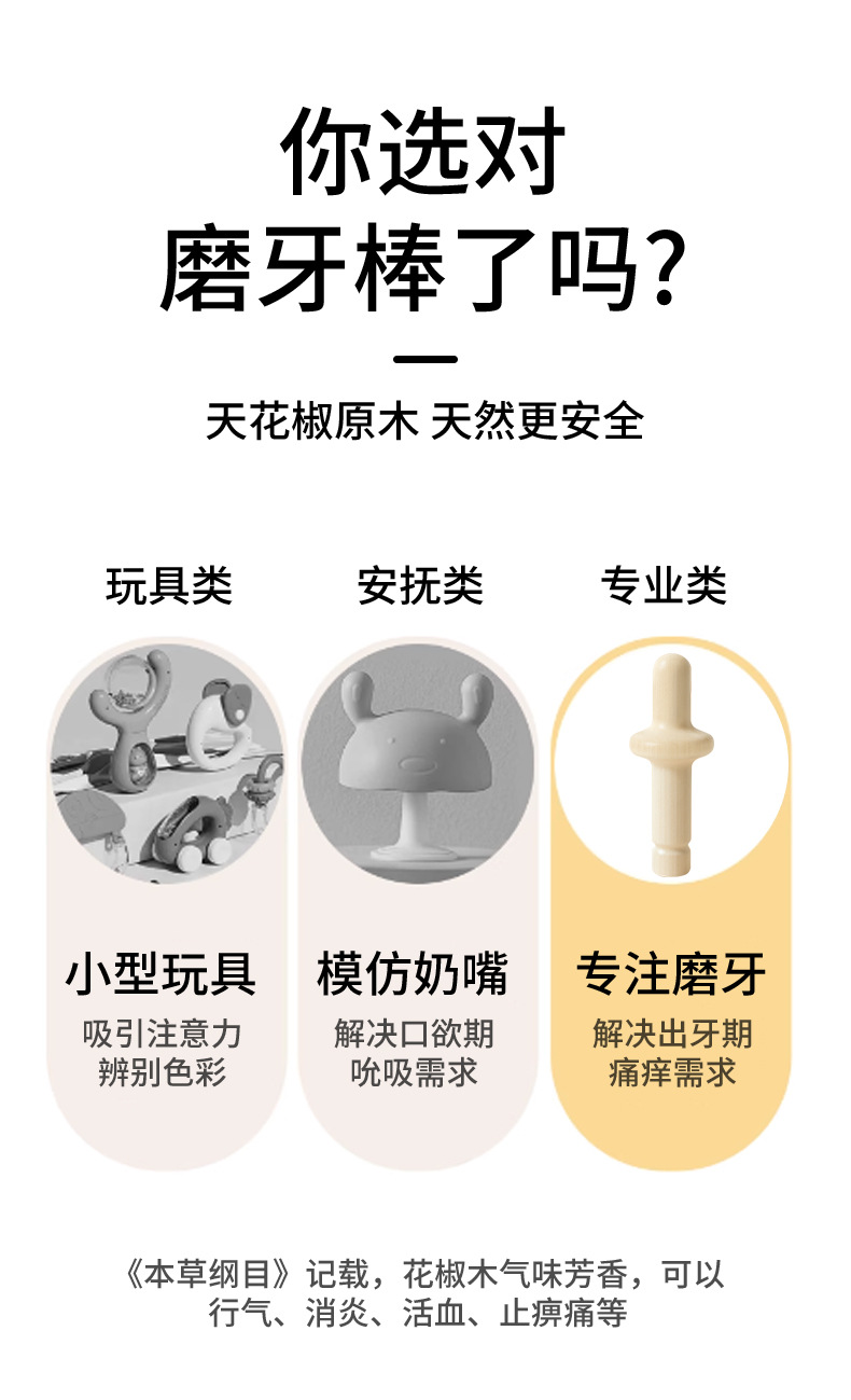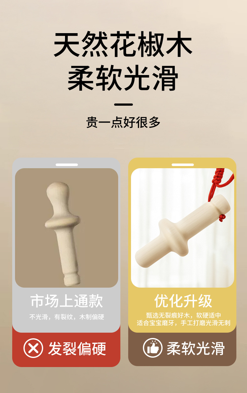 传统婴儿牙胶花椒木磨牙棒婴儿手握牙胶宝宝咬胶幼儿口欲期玩具 投诉
