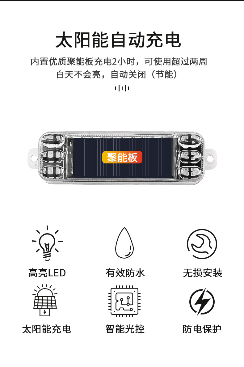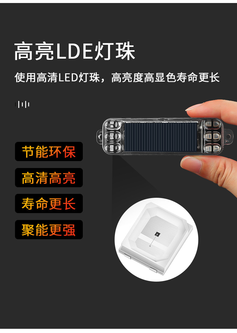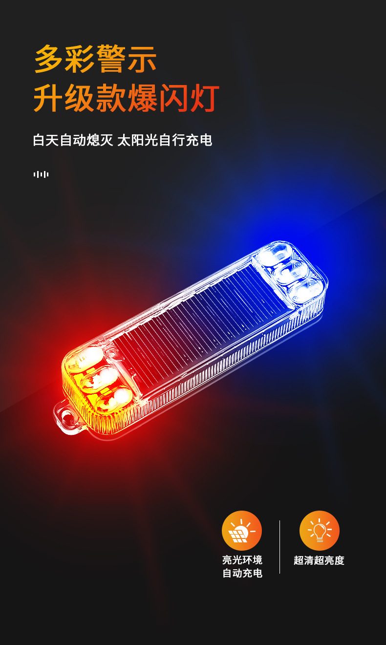摩托车太阳能警示爆闪灯电动车防追尾灯闪光免接线汽车呼吸后尾灯