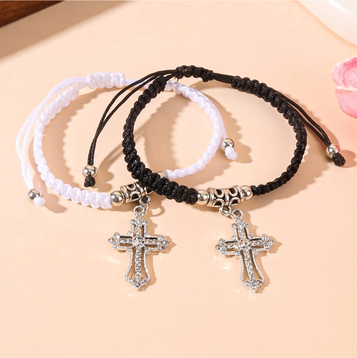 新款跨境精美手绳时尚十字架手链情侣姐妹百搭简约编织手工饰品