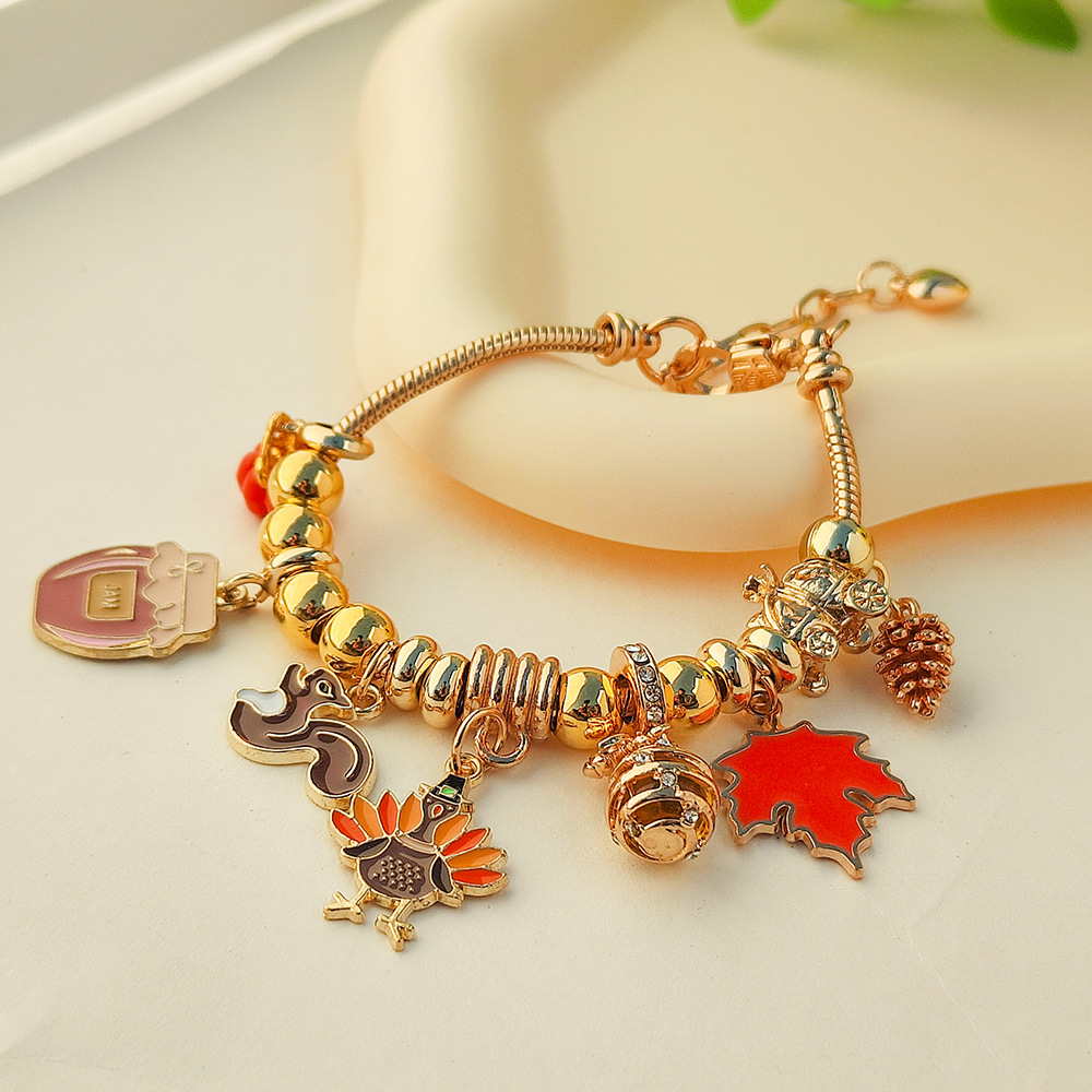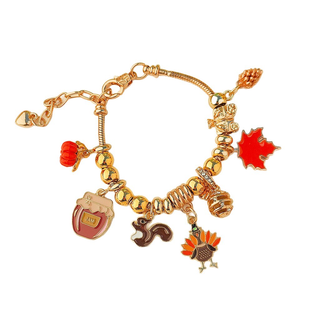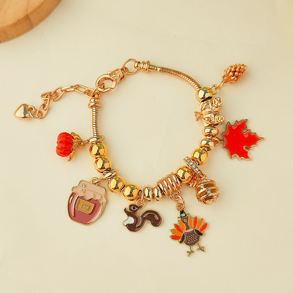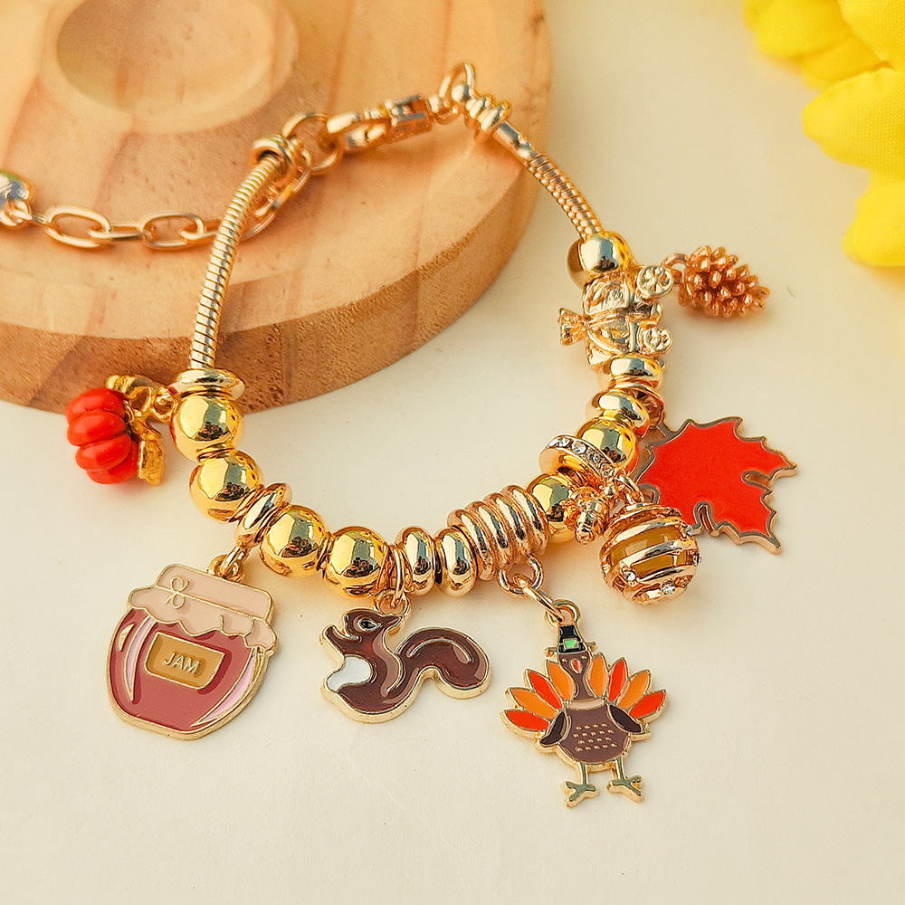 亚马逊跨境热销爆款秋季感恩节南瓜枫叶松鼠多吊坠手链