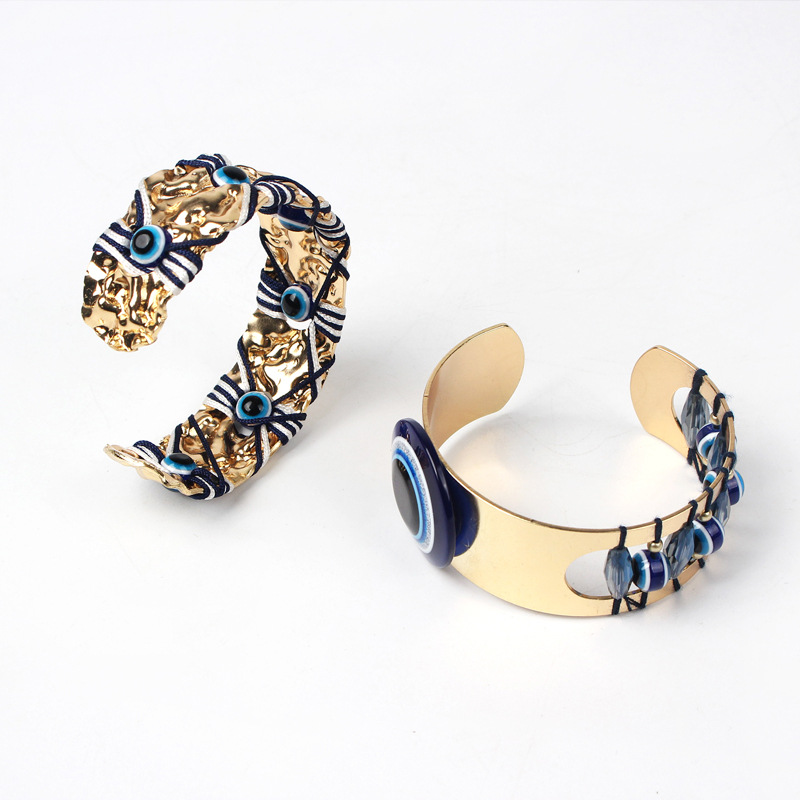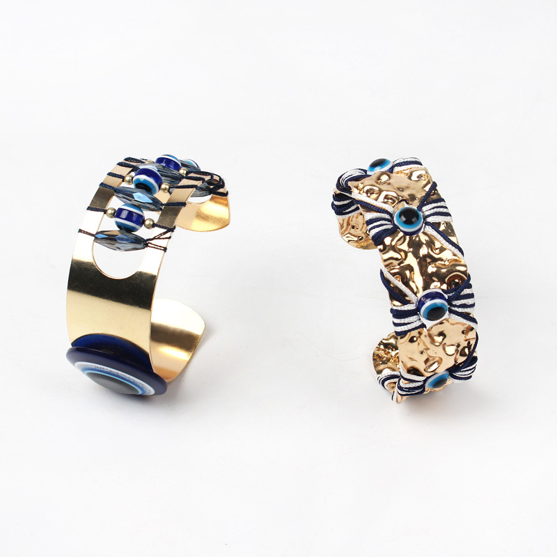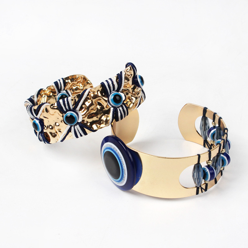 跨境外贸恶魔之眼复古手饰手环男女百搭欧美范开口可调节情侣手镯
