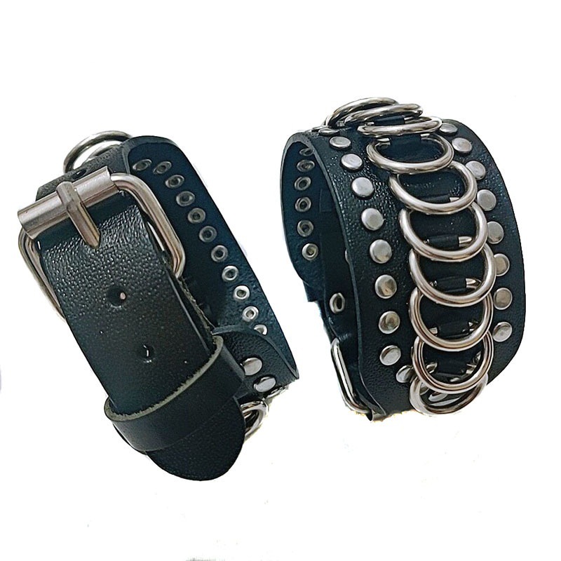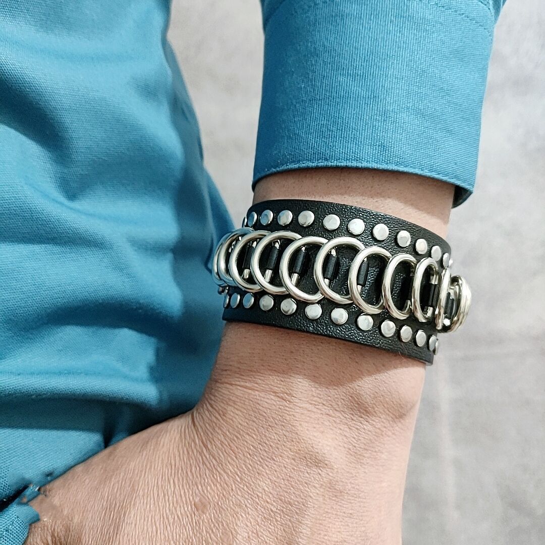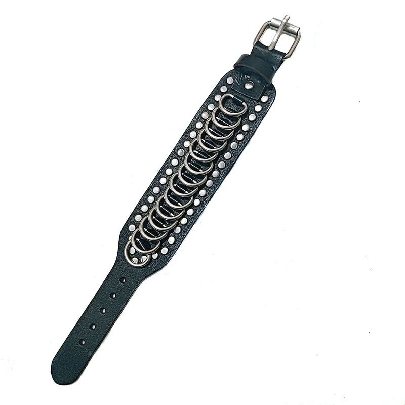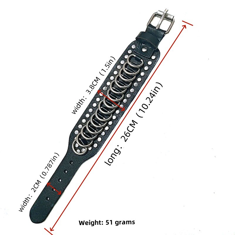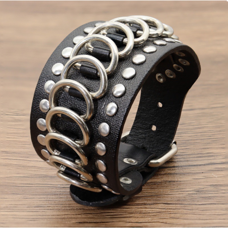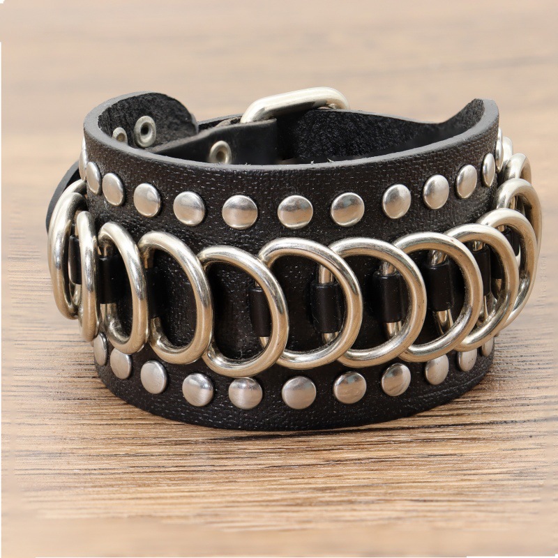 跨境热卖源头工厂朋克铆钉皮革手链大版型金属环腕带现货批发复古