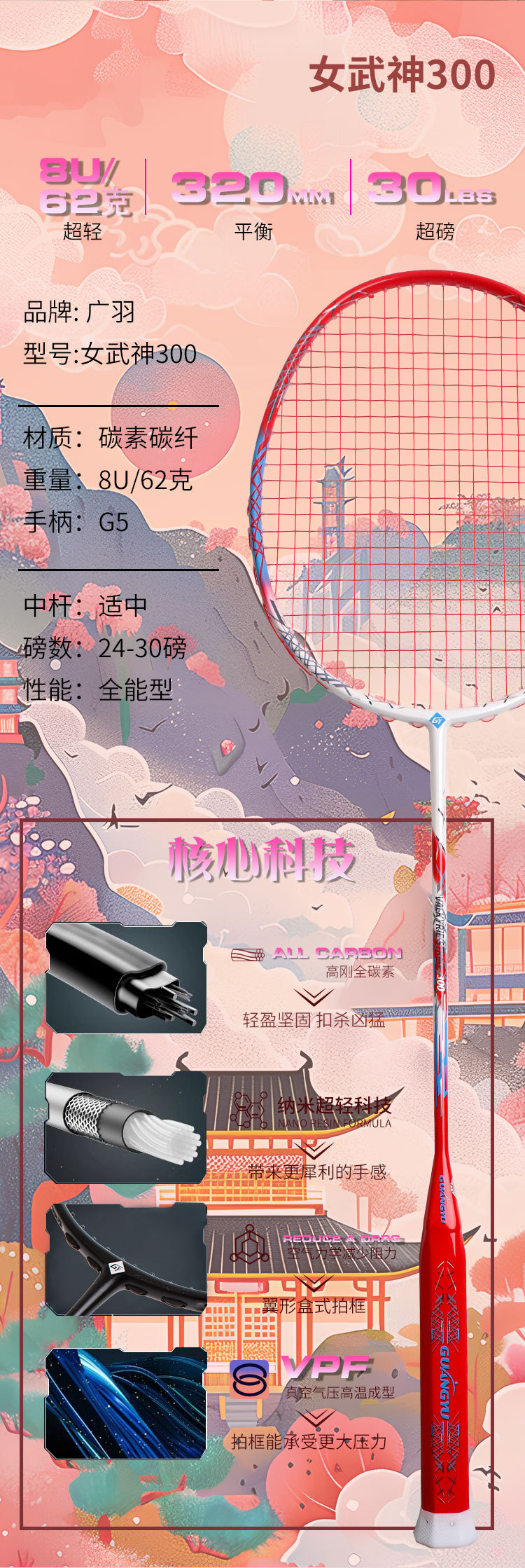 广羽新款“女武神300”8U/30磅