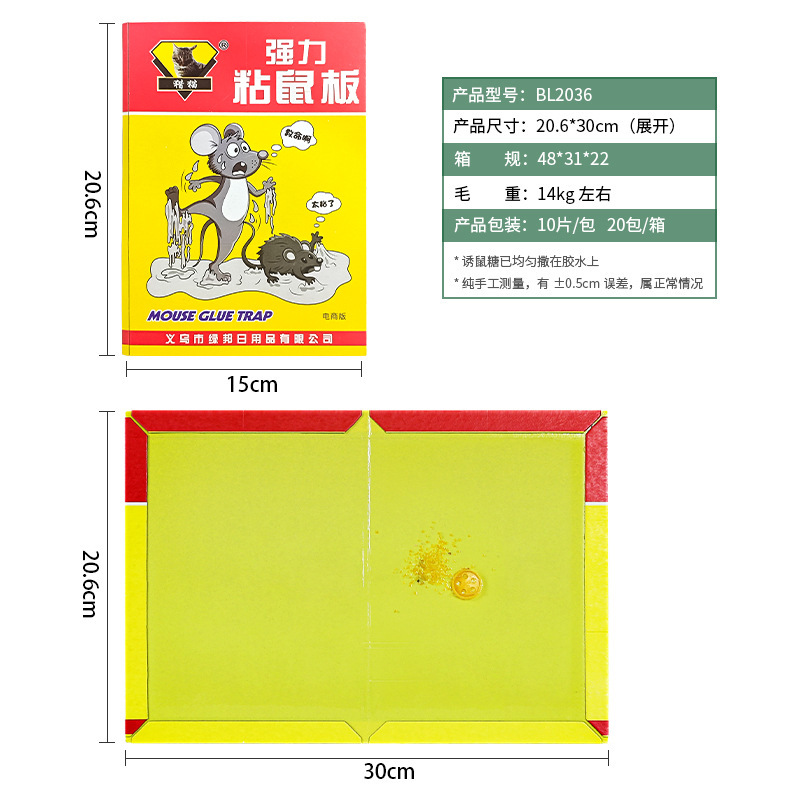包装方式:10个粘鼠板+10包诱饵/袋、20袋/箱