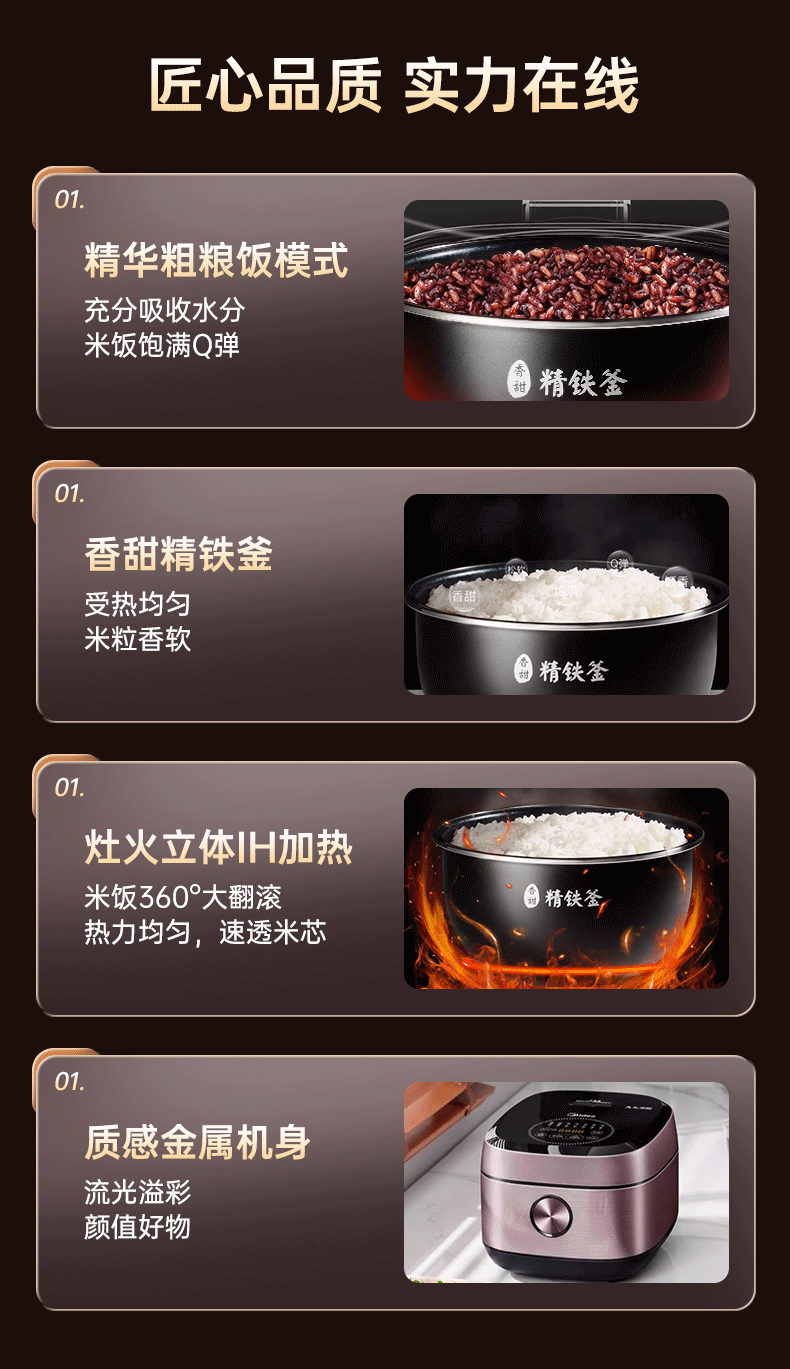 美的IH电饭煲5L电饭锅多功能3-4人大容量不粘内胆快速饭大火力