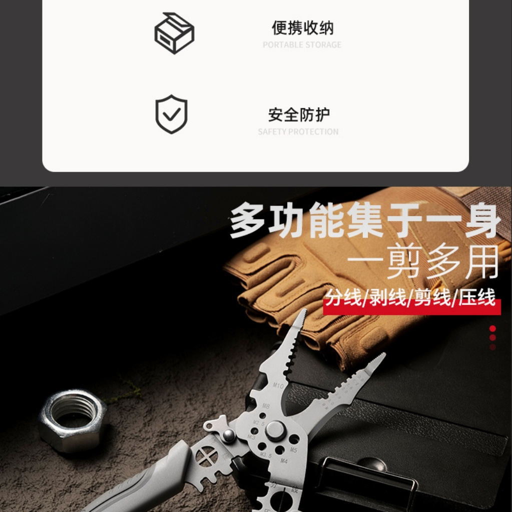 多功能电工专用剥线钳新款分线扒皮压线万能绕线工业剪线线管钳子 投诉