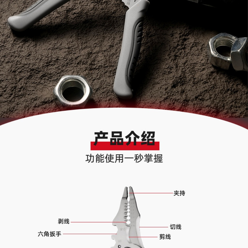 多功能电工专用剥线钳新款分线扒皮压线万能绕线工业剪线线管钳子