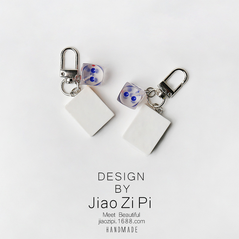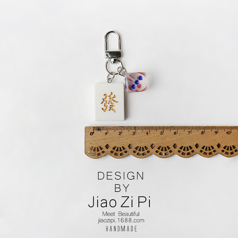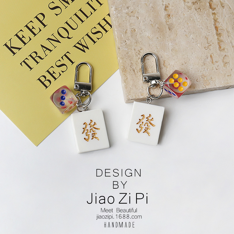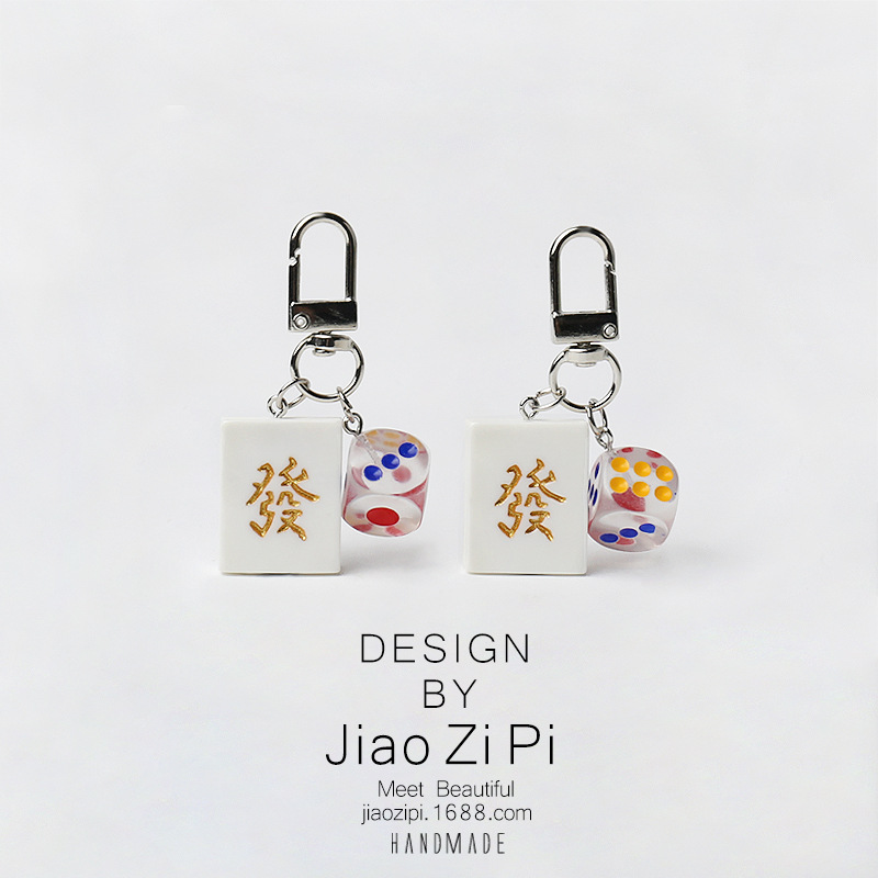 国潮设计麻将骰子发财钥匙扣挂件简约书包挂饰礼物日常创意配饰品