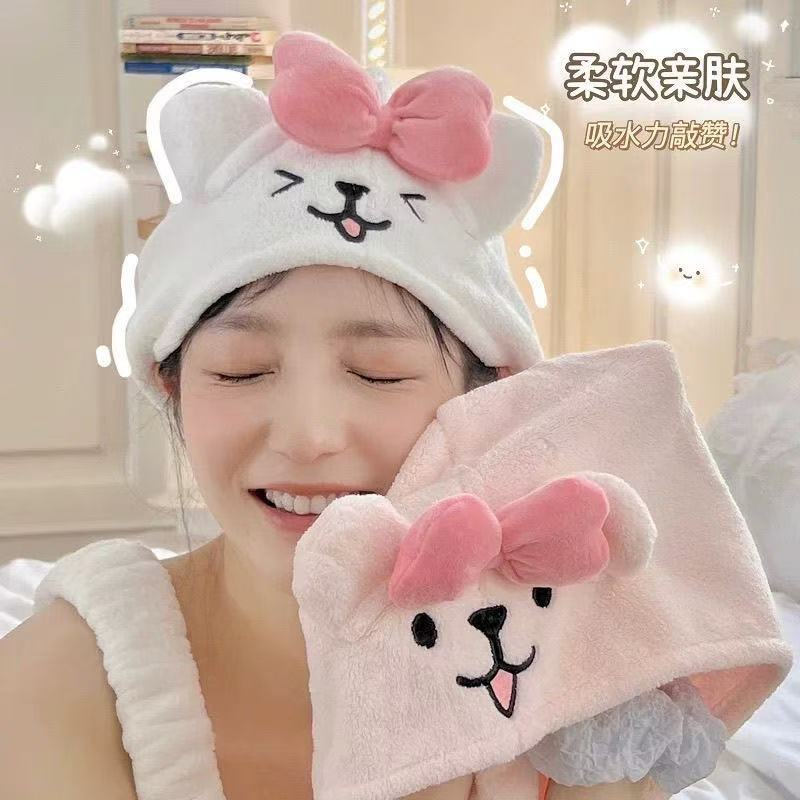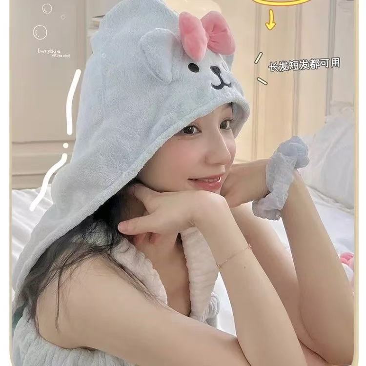 小狗干发帽珊瑚绒吸水可爱速干包头巾洗澡洗头毛巾擦头长发女生