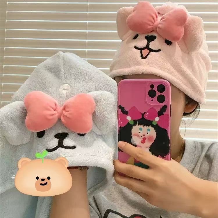 小狗干发帽珊瑚绒吸水可爱速干包头巾洗澡洗头毛巾擦头长发女生 投诉