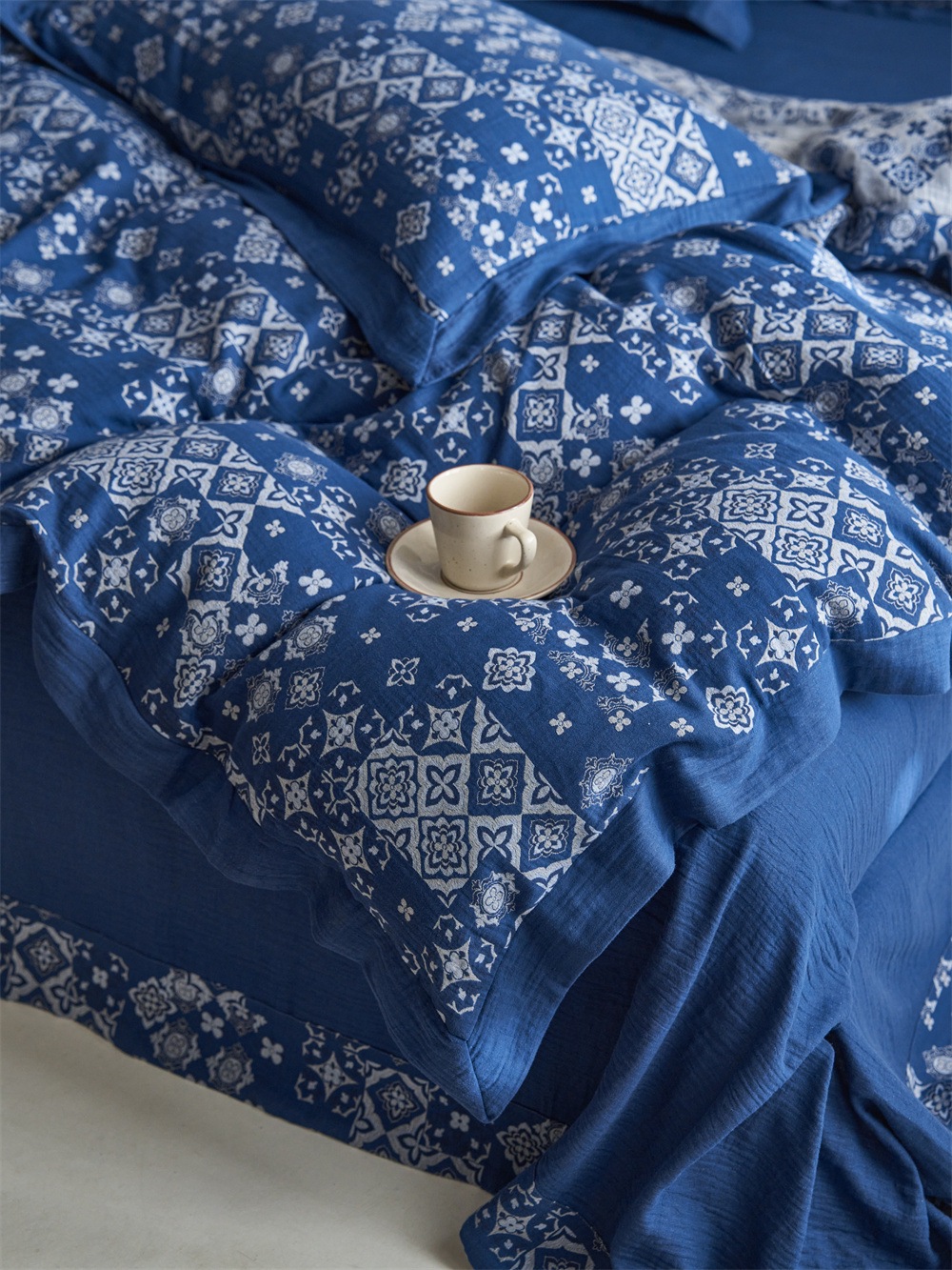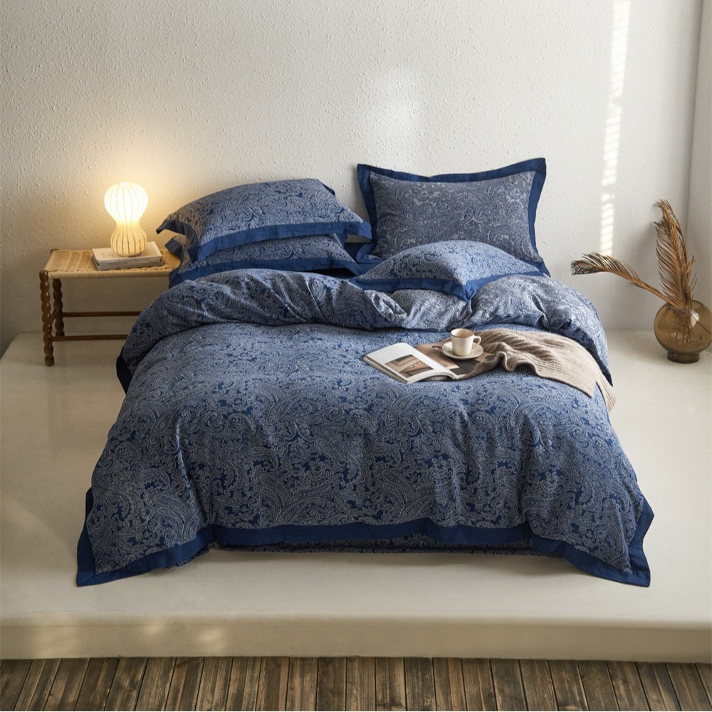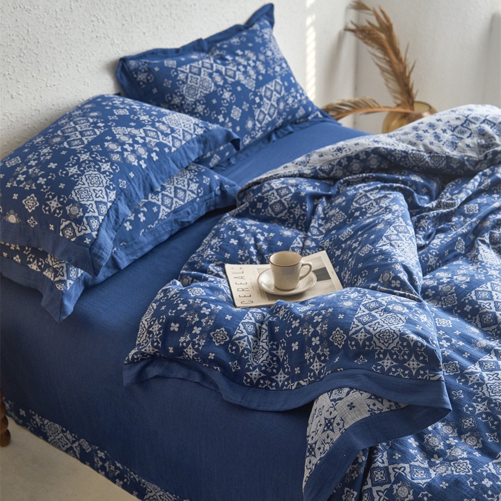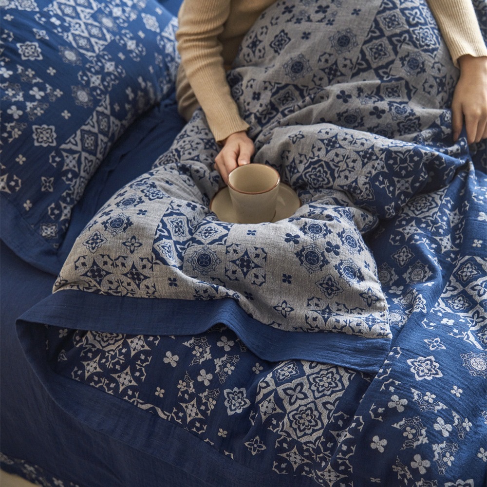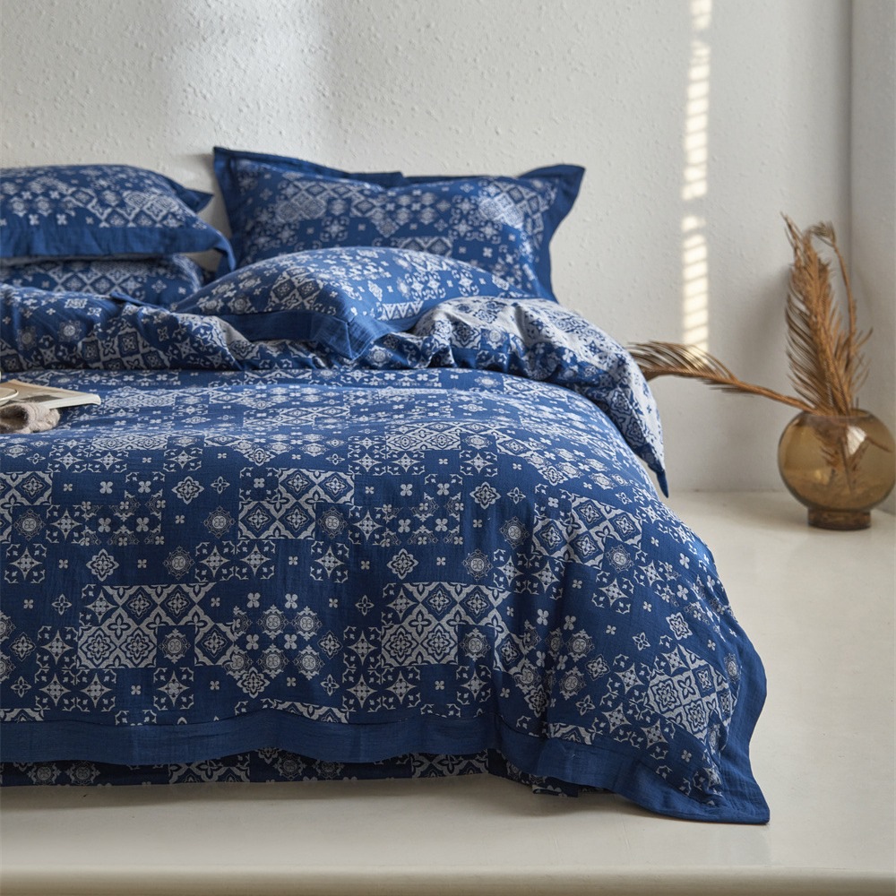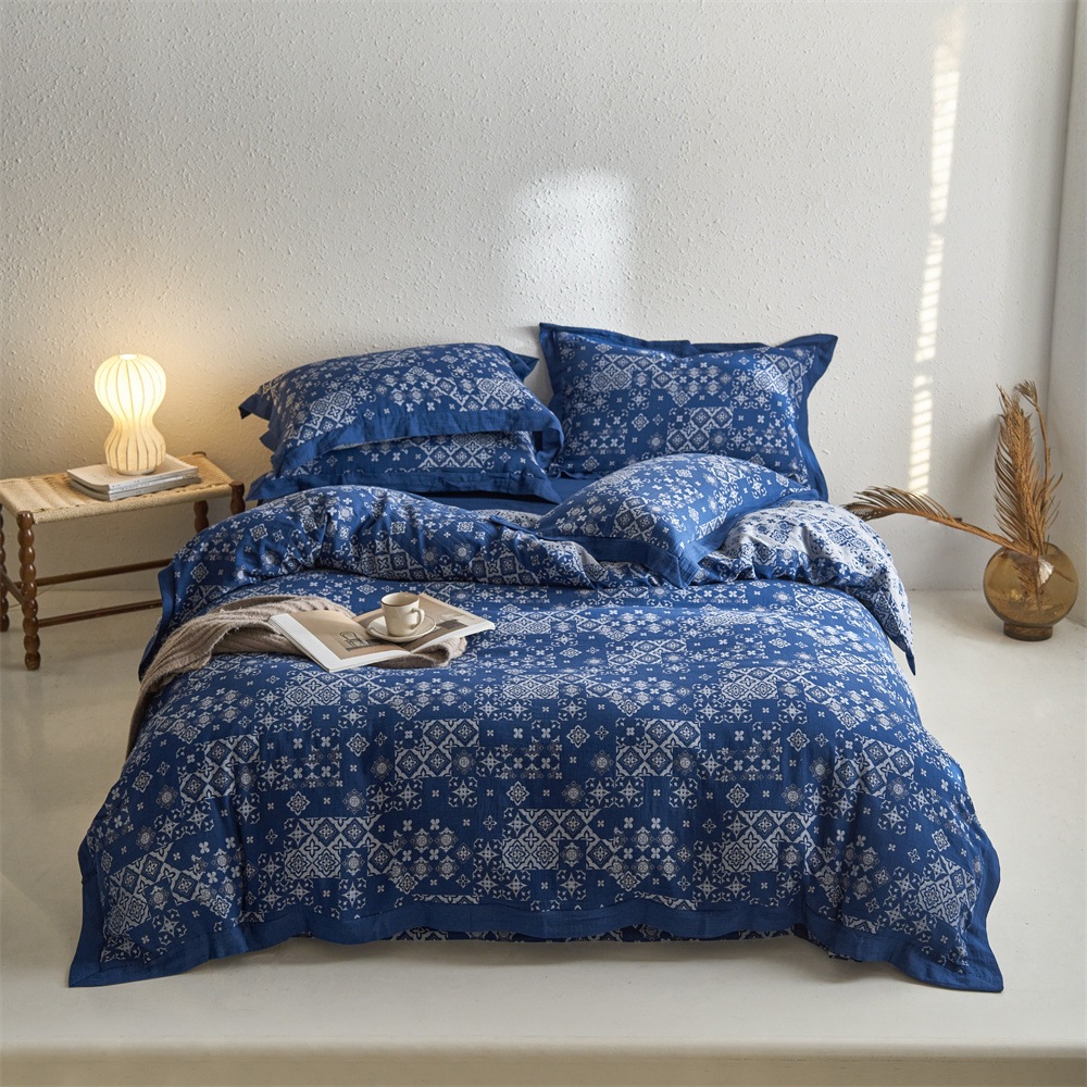 全棉色织大提花双层纱四件套-宽边款