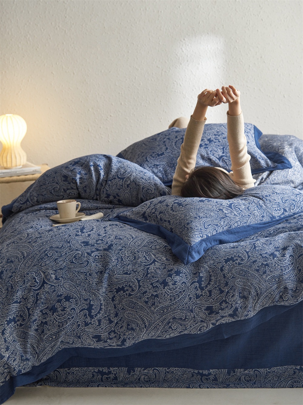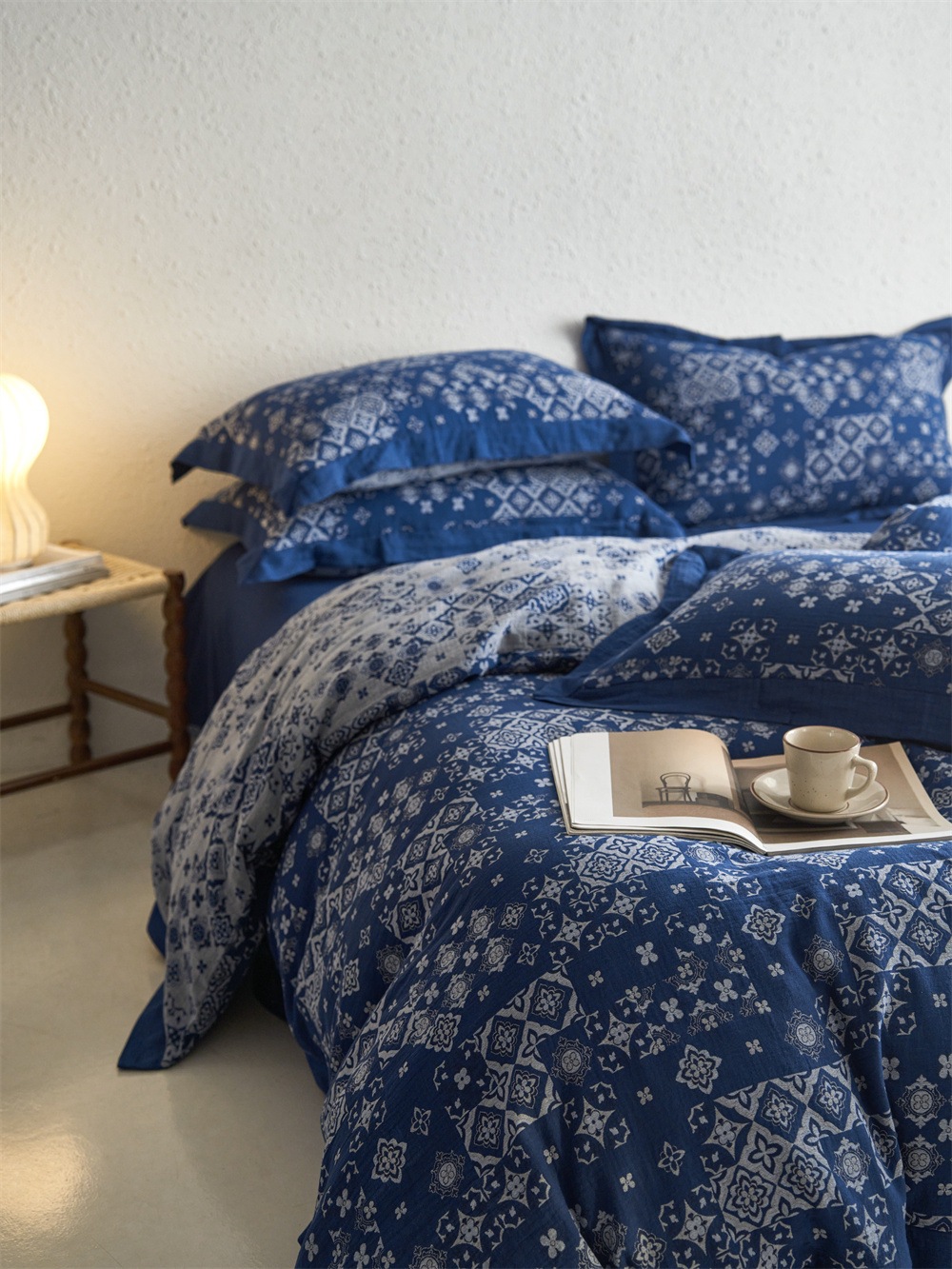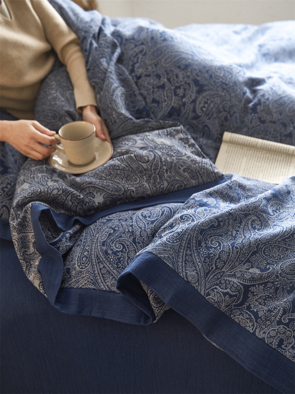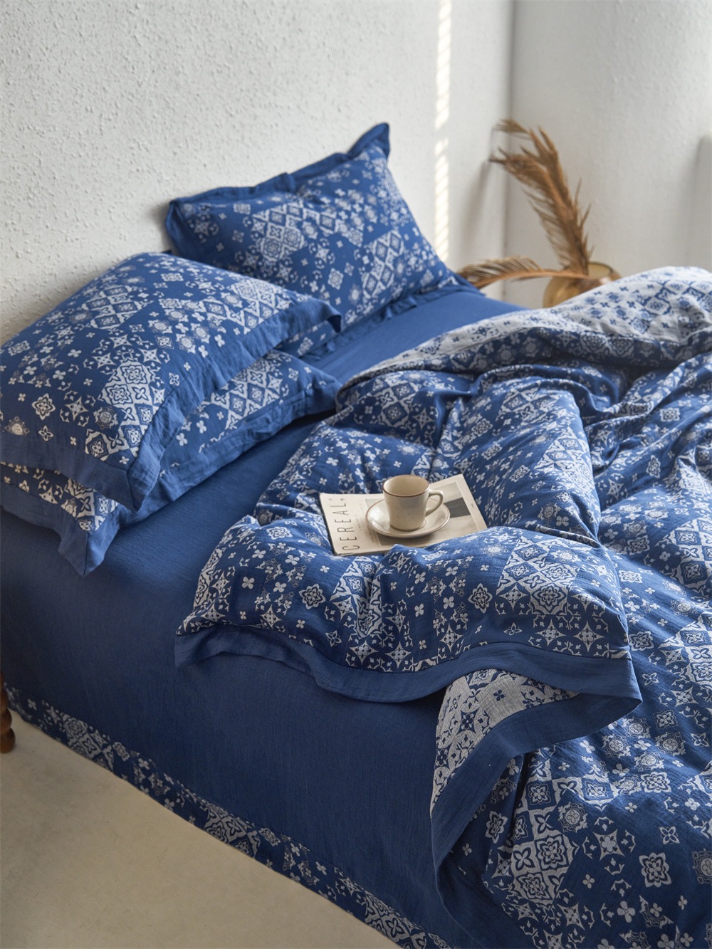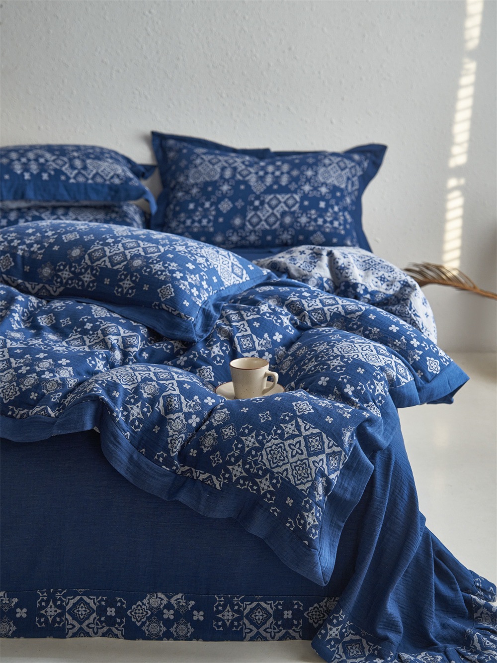全棉色织大提花双层纱四件套-宽边款