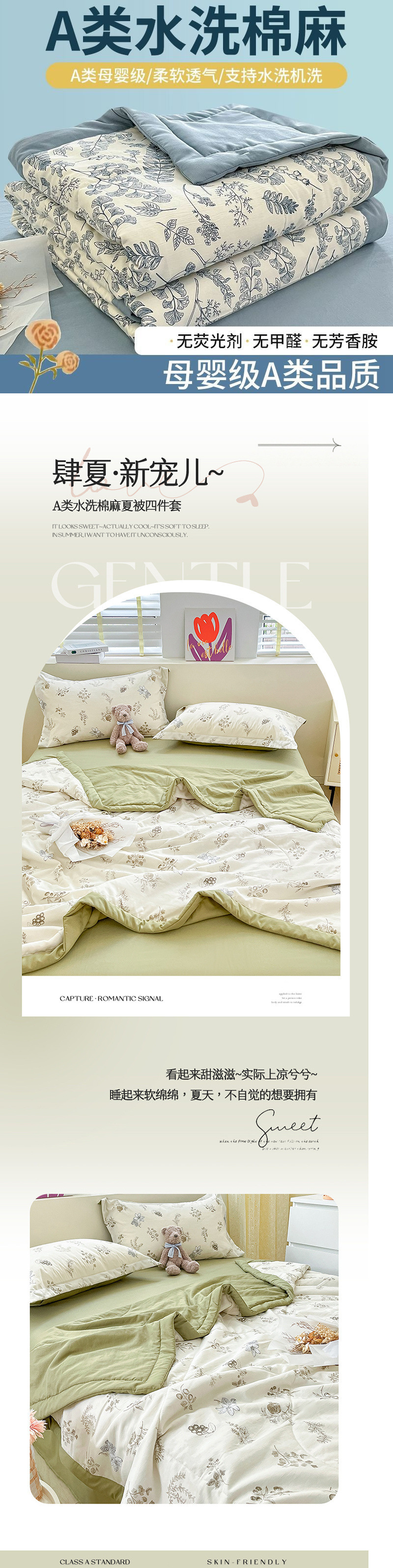 | 1.5m四件套 夏被+枕套*2+床单 | ¥9693 | 1000套可售 |