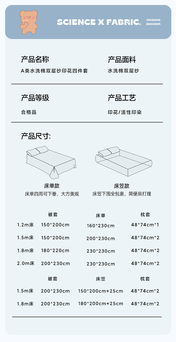 | 1.5床单四件套-被套150*200 | ¥5143 | 10000套可售 |