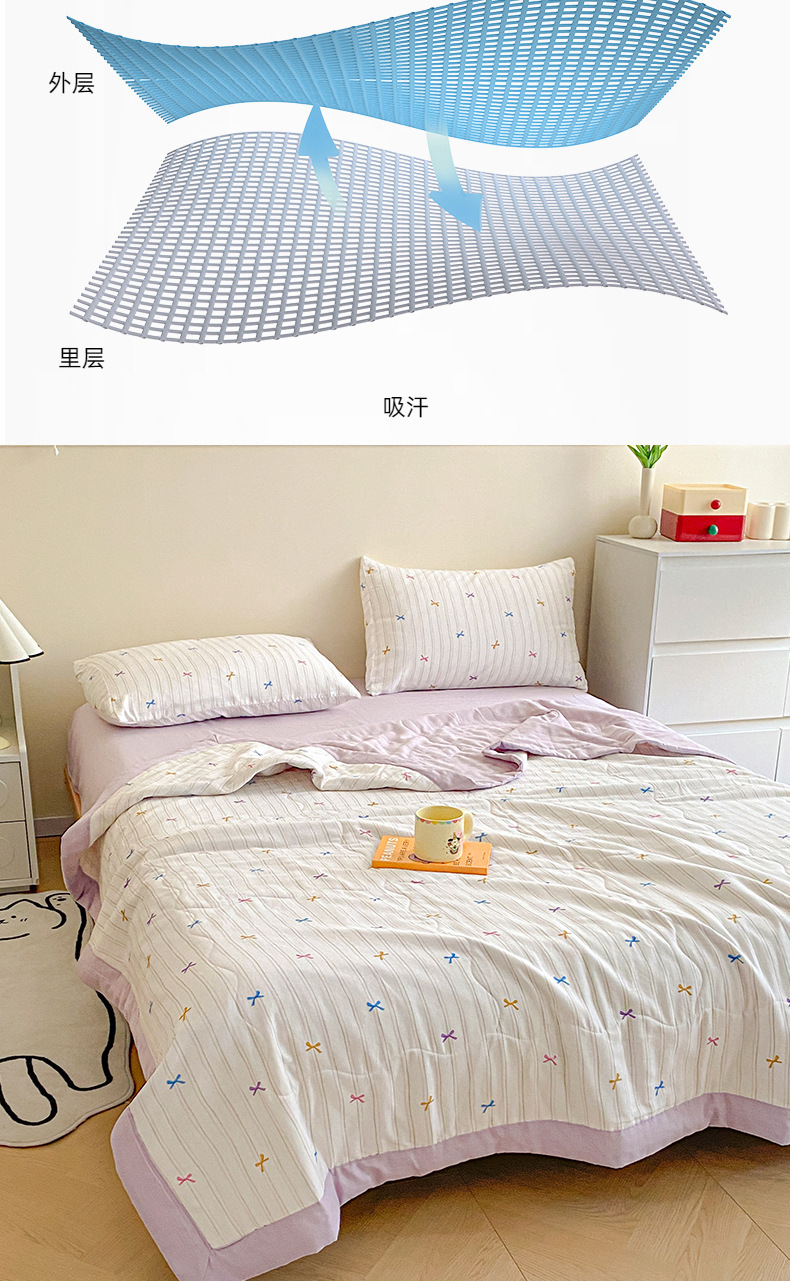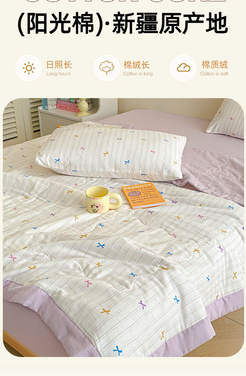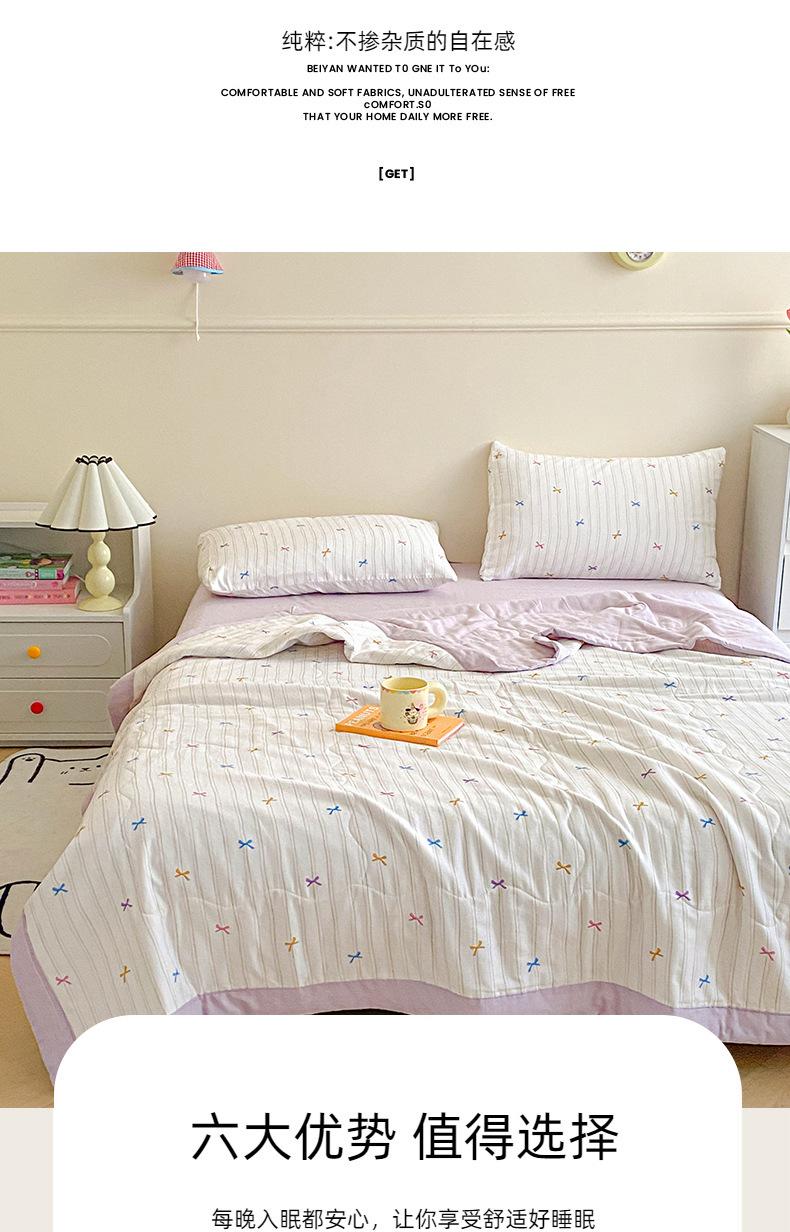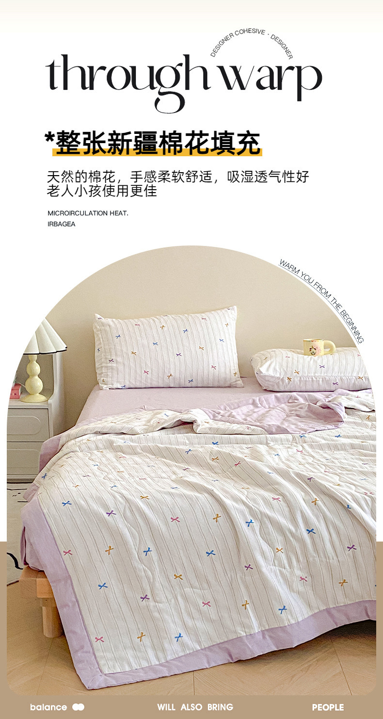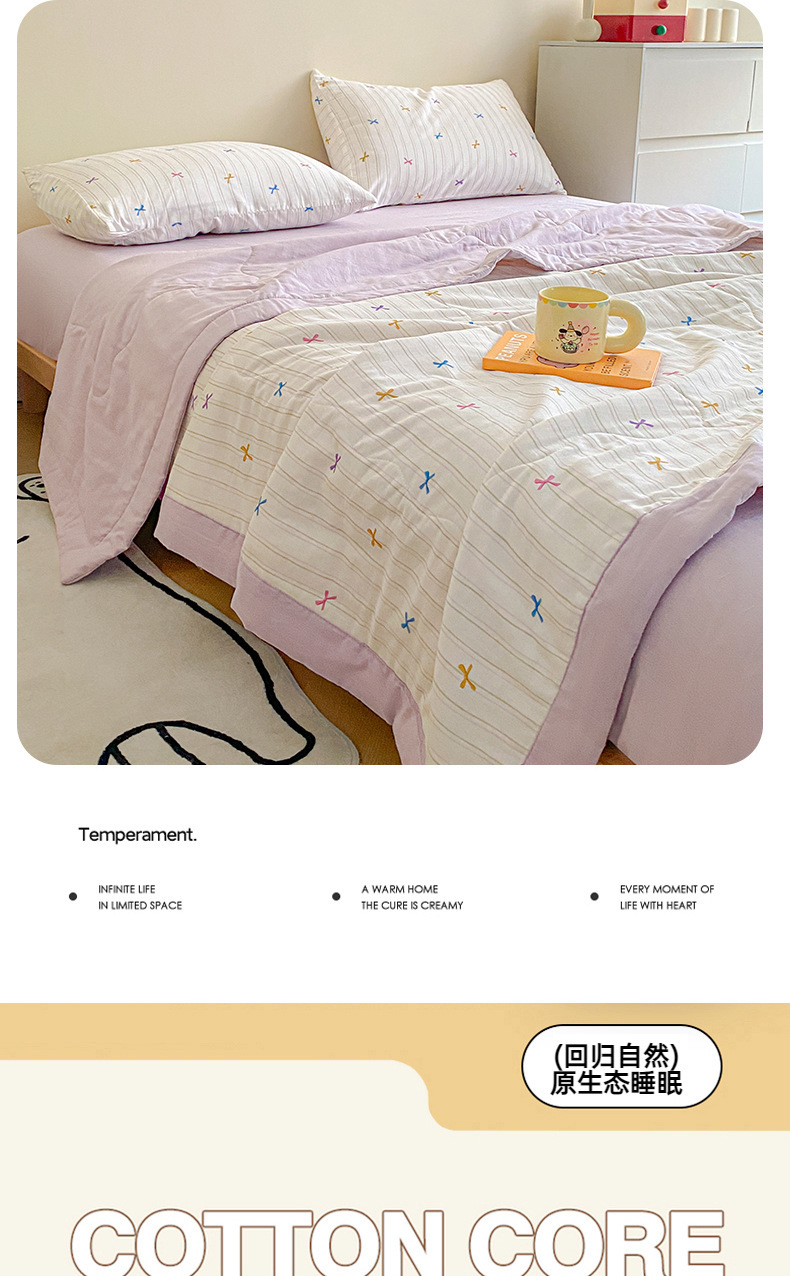 | 150*200cm夏被三件套:夏被150*200cm 枕套48*74cm一对 | ¥12400 | 100床可售 |