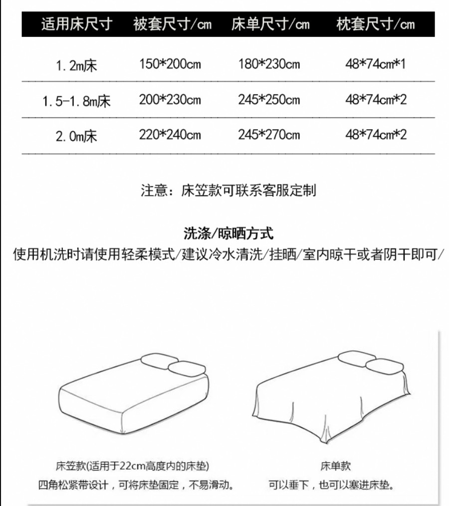 | 1.8米加大床笠四件套定制不退换(适用被芯220X240) | ¥45000 | 891件可售 |