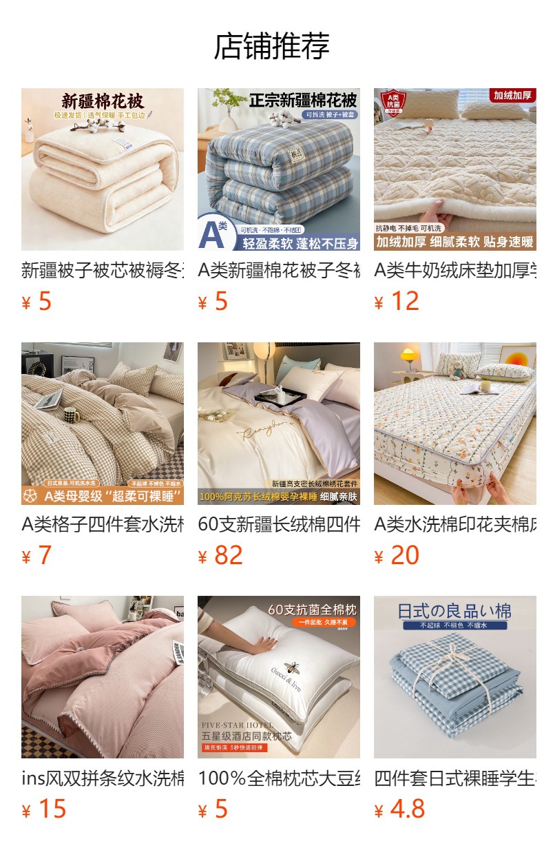 | 0.9/1.2m宿舍三件套:被套150*200cm | ¥4595 | 56895套可售 |