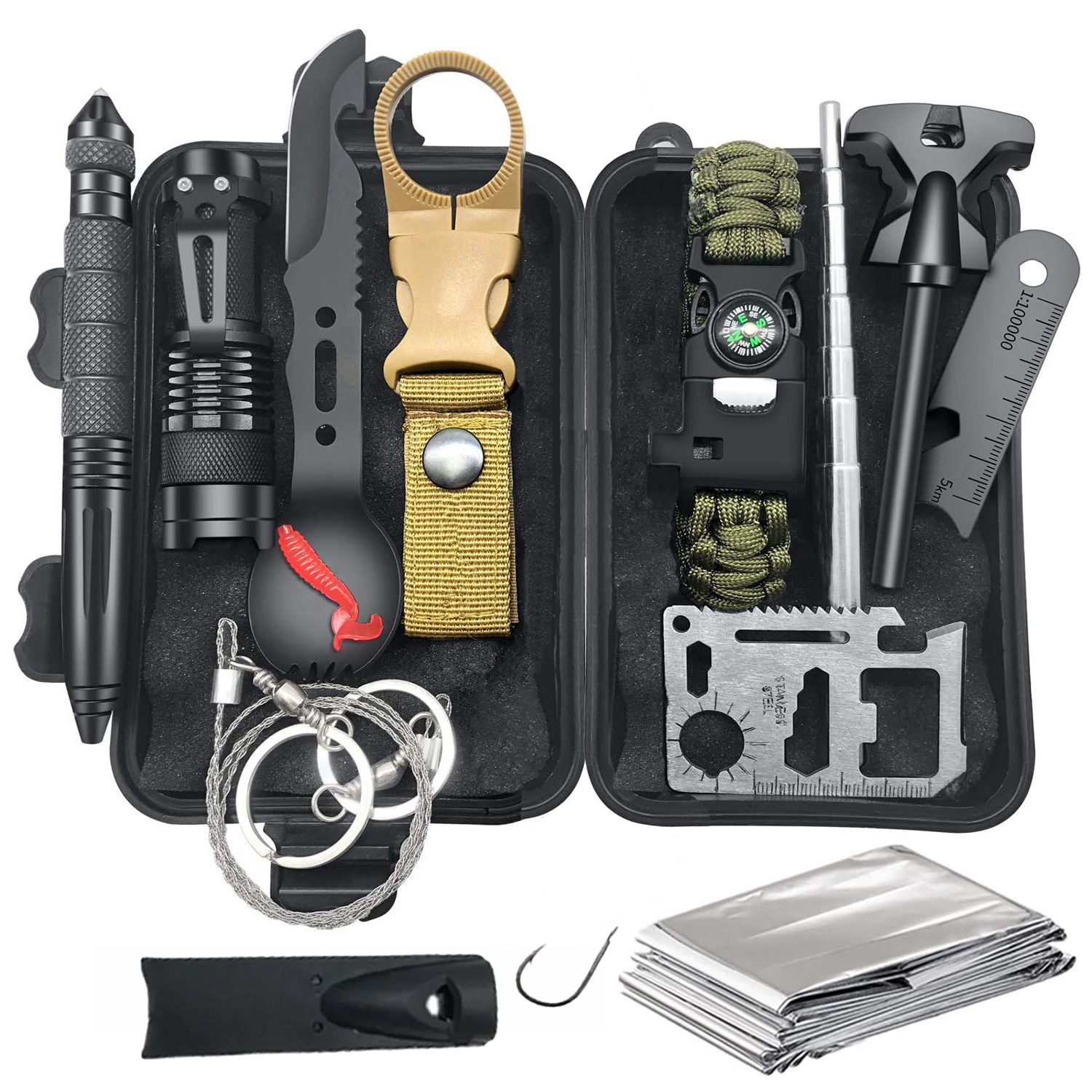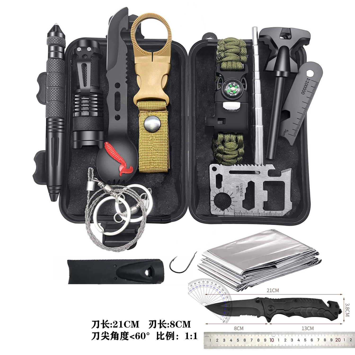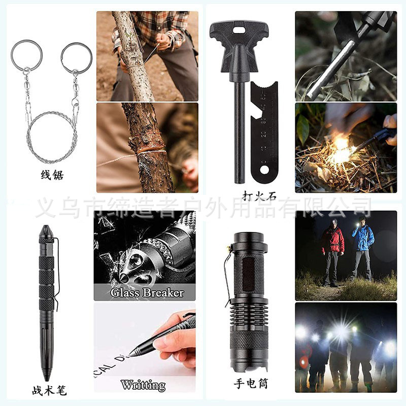 野外求生装备13件户外用品多功能工具套装探险防身急救露营装备