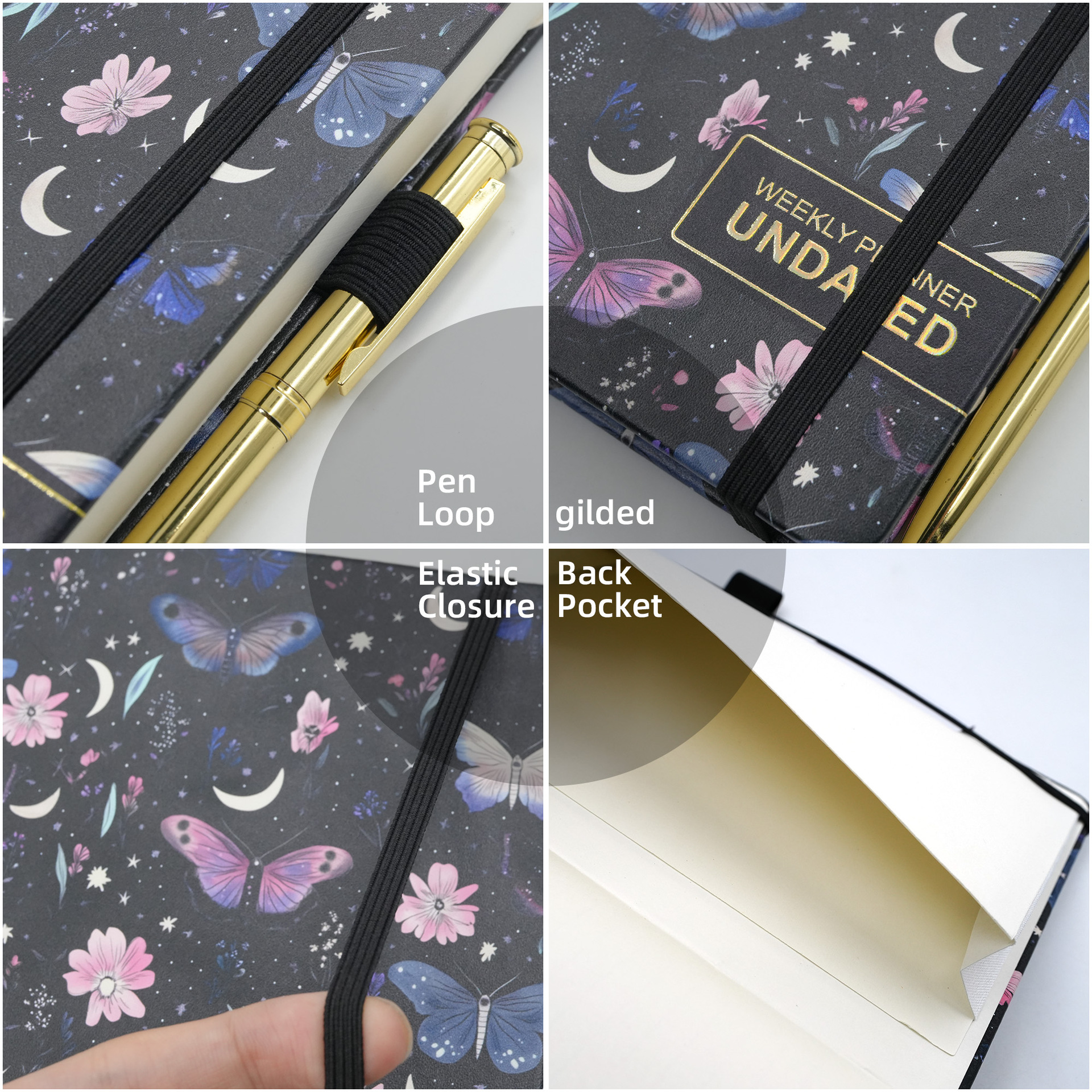 亚马逊无日期计划本花卉周计划笔记本A5蝴蝶日程本跨境记事本定制