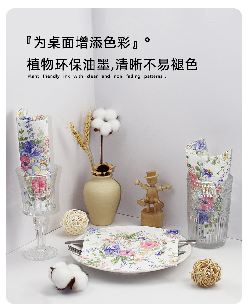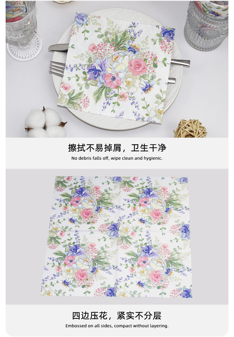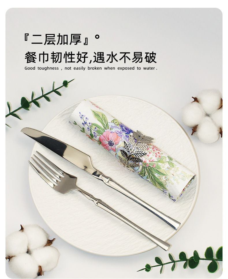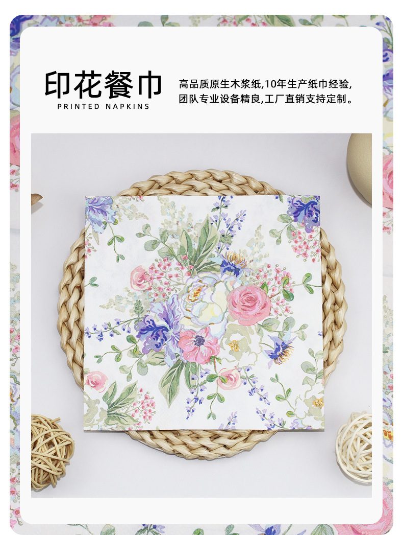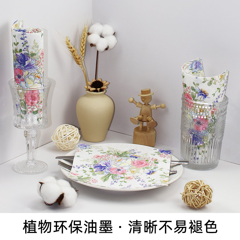 印花餐巾纸酒店餐厅派对装饰花卉纸巾家用客厅一次性方巾工厂直销 投诉