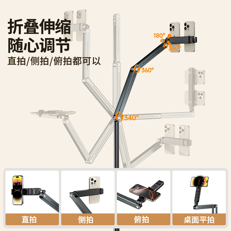 镈锐boneruy直播支架双夹头直播拍摄支架可360度旋转折叠懒人支架