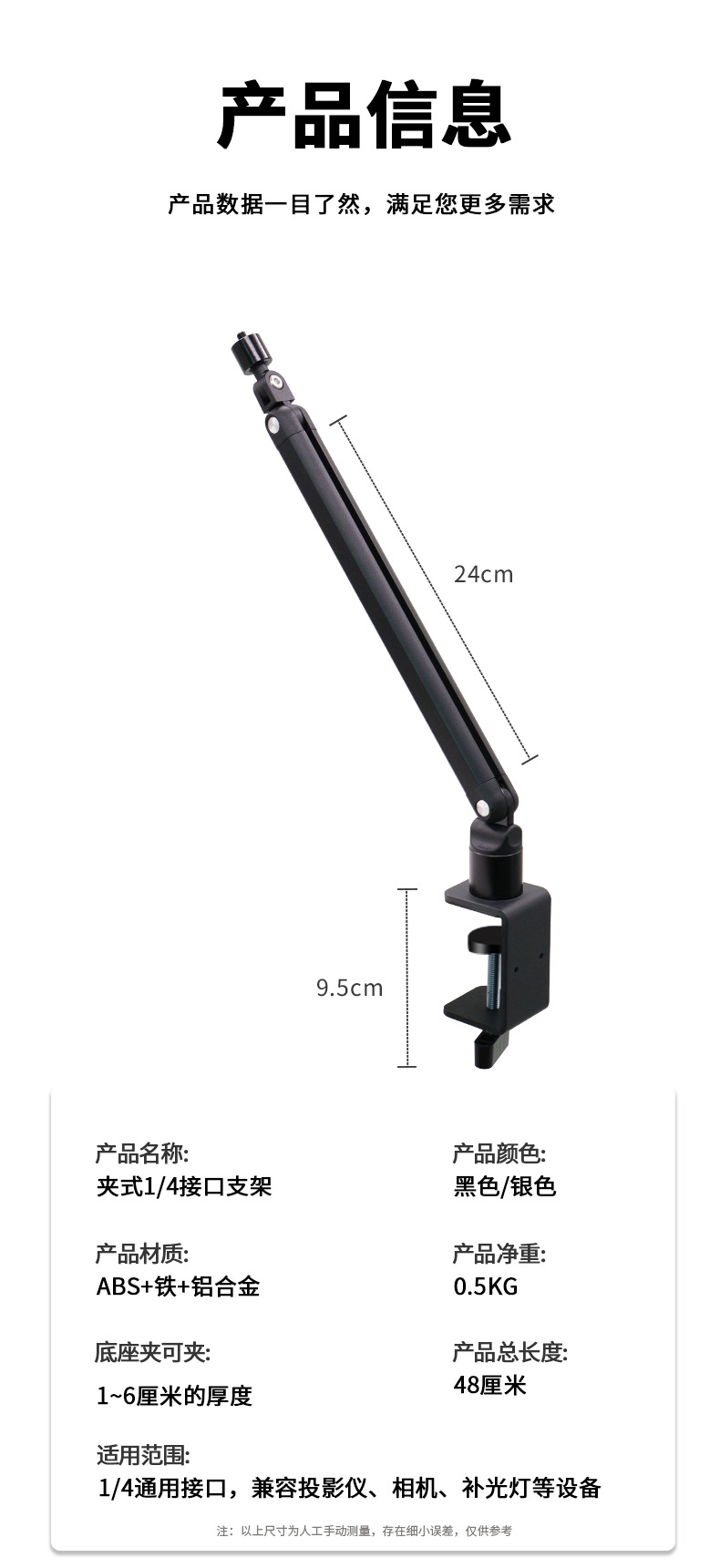 | 黑色夹式单臂平板夹【可夹12-25cm】 | ¥0 | 5000个可售 |