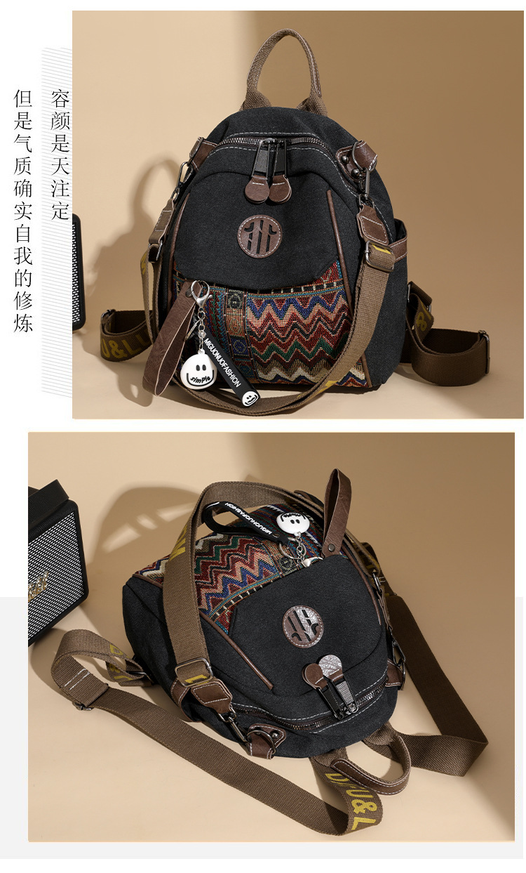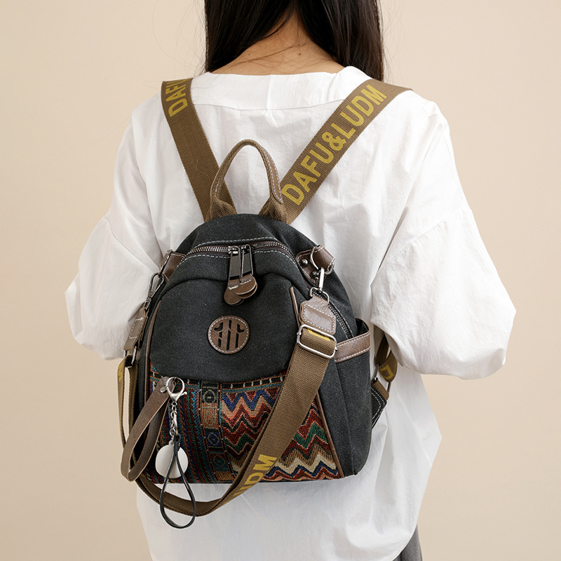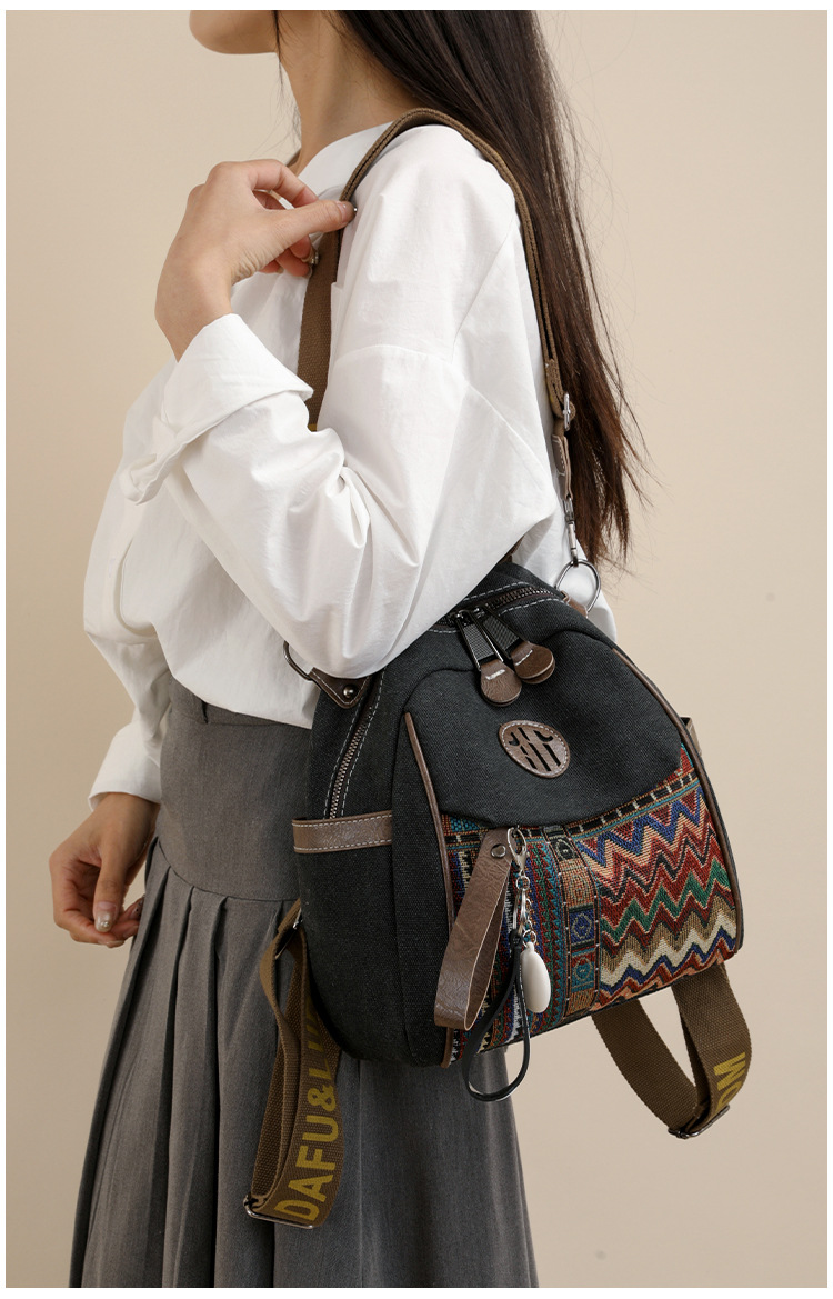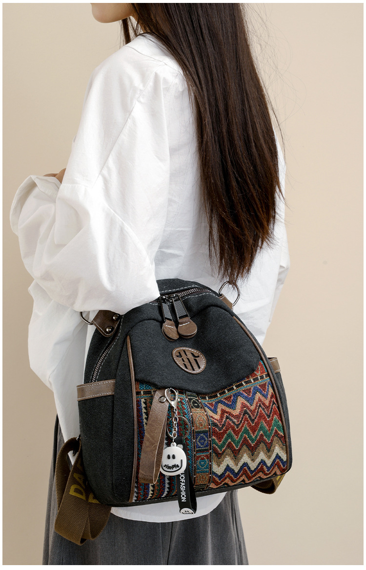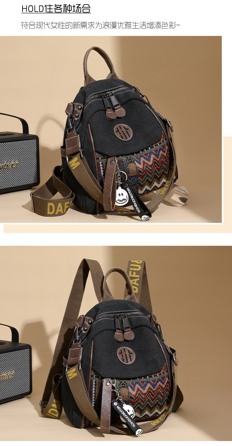高级牛仔布民族风刺绣双肩包女2025新款撞色大容量背包多用斜挎包 投诉