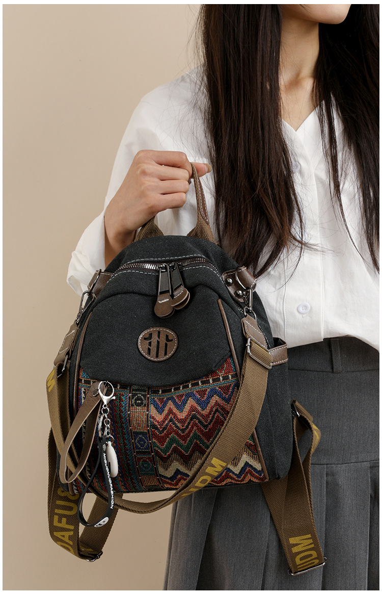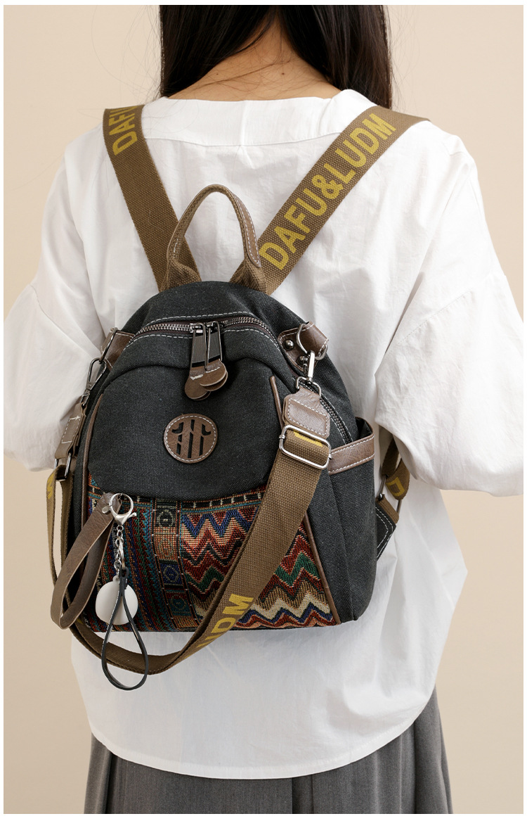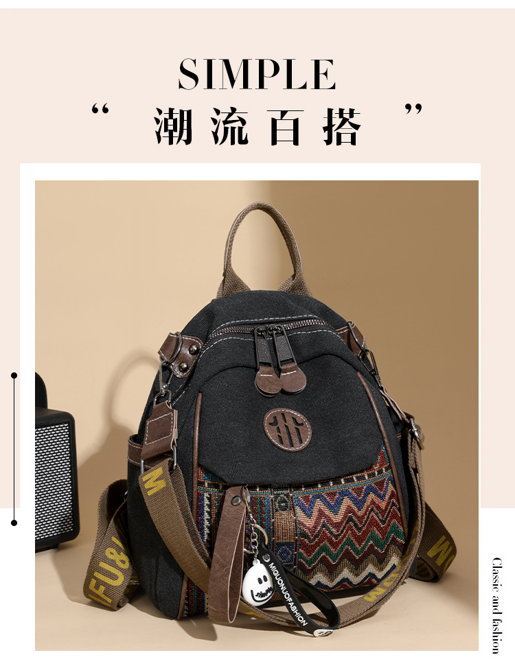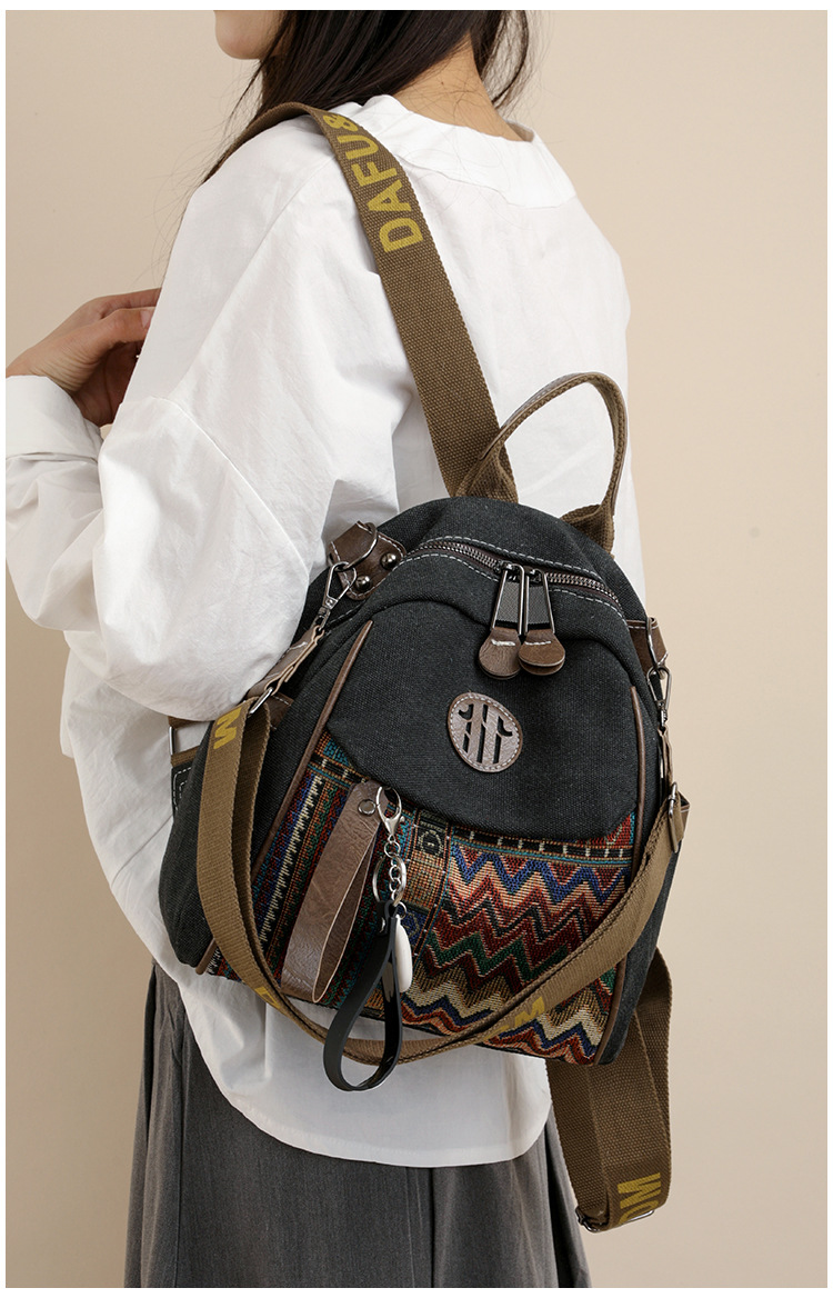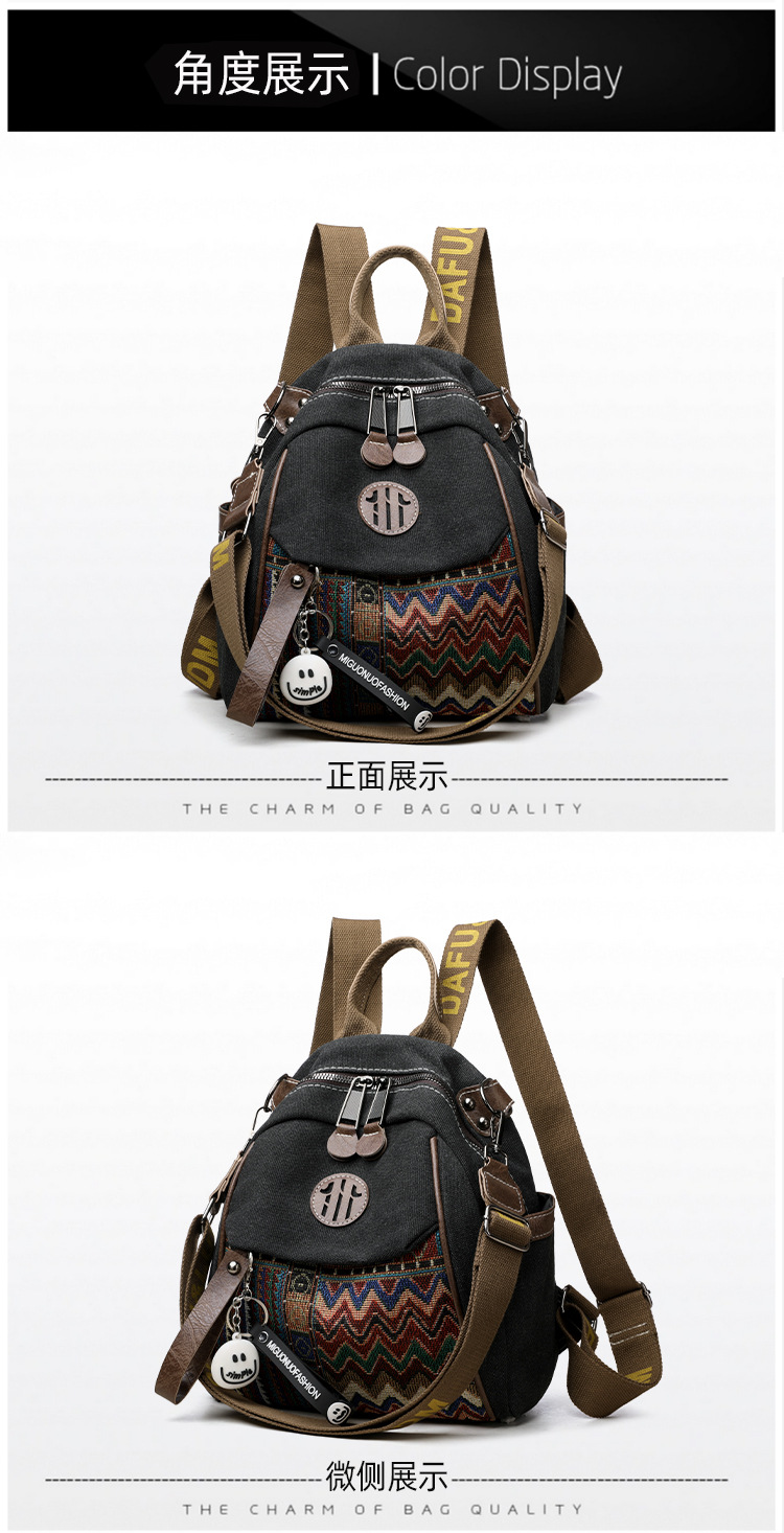 高级牛仔布民族风刺绣双肩包女2025新款撞色大容量背包多用斜挎包 投诉